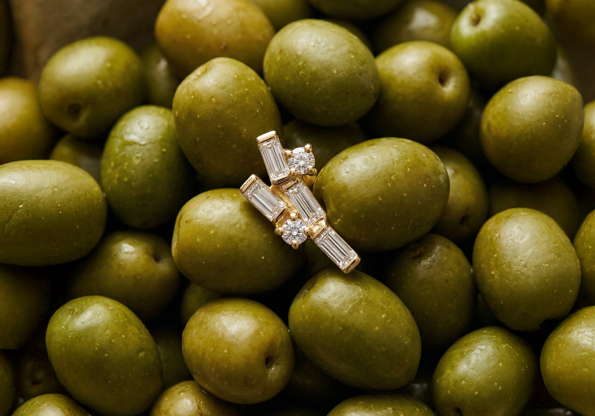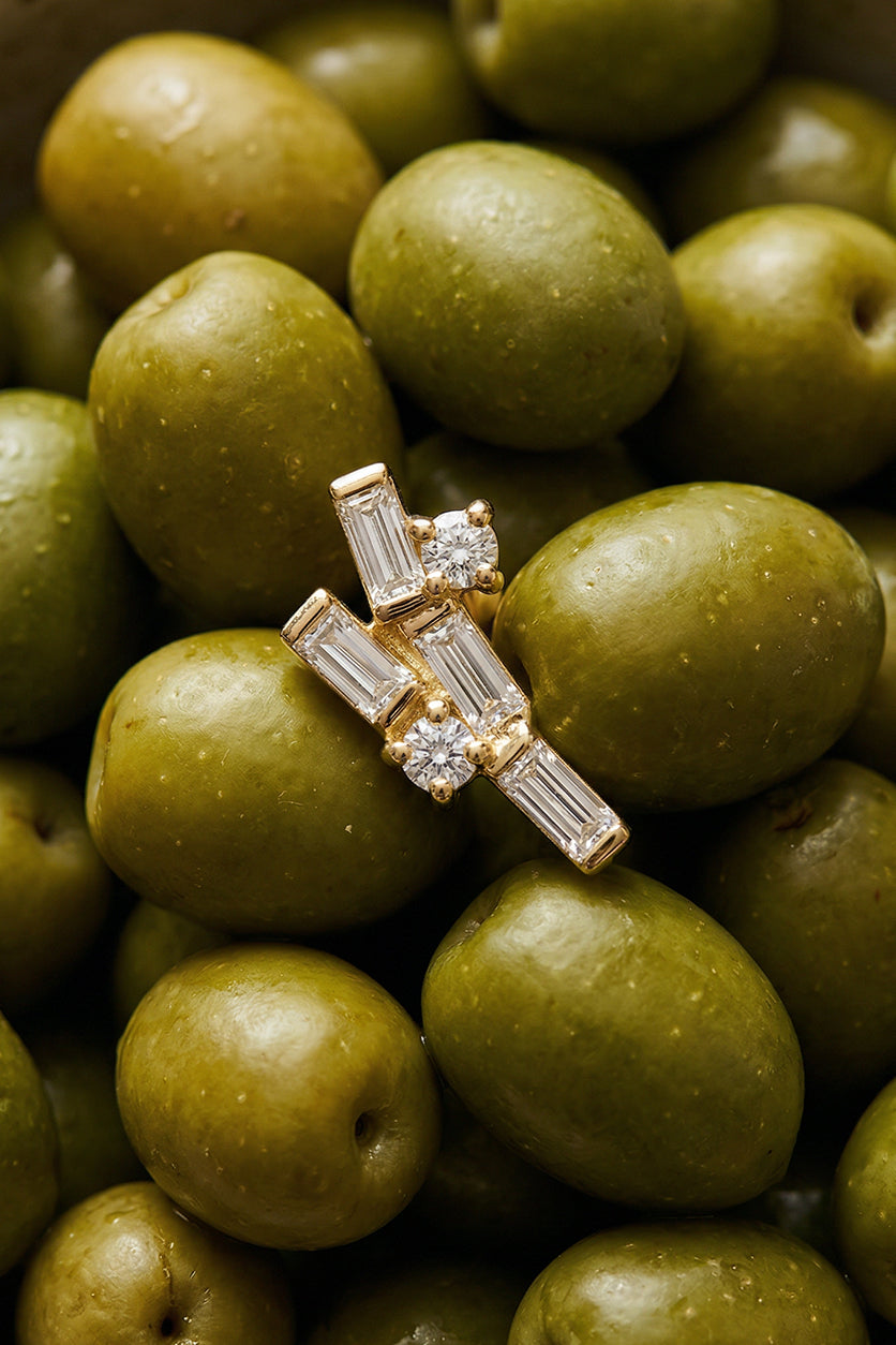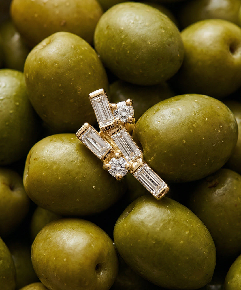 Modern bir estetikle tasarlanan bu ürünler, stilinize çağdaş ve lüks bir dokunuş katar. Farklı formlardaki baget ve yuvarlak kesim taşların asimetrik dizilimi, ürünlere dinamik bir ışıltı ve özgün bir karakter kazandırır. Hem günlük şıklığınızı tamamlayacak hem de özel anlarınıza modern bir zarafet katacak bu altın ürünler, sofistike mücevher modasının en şık örneklerinden biridir.