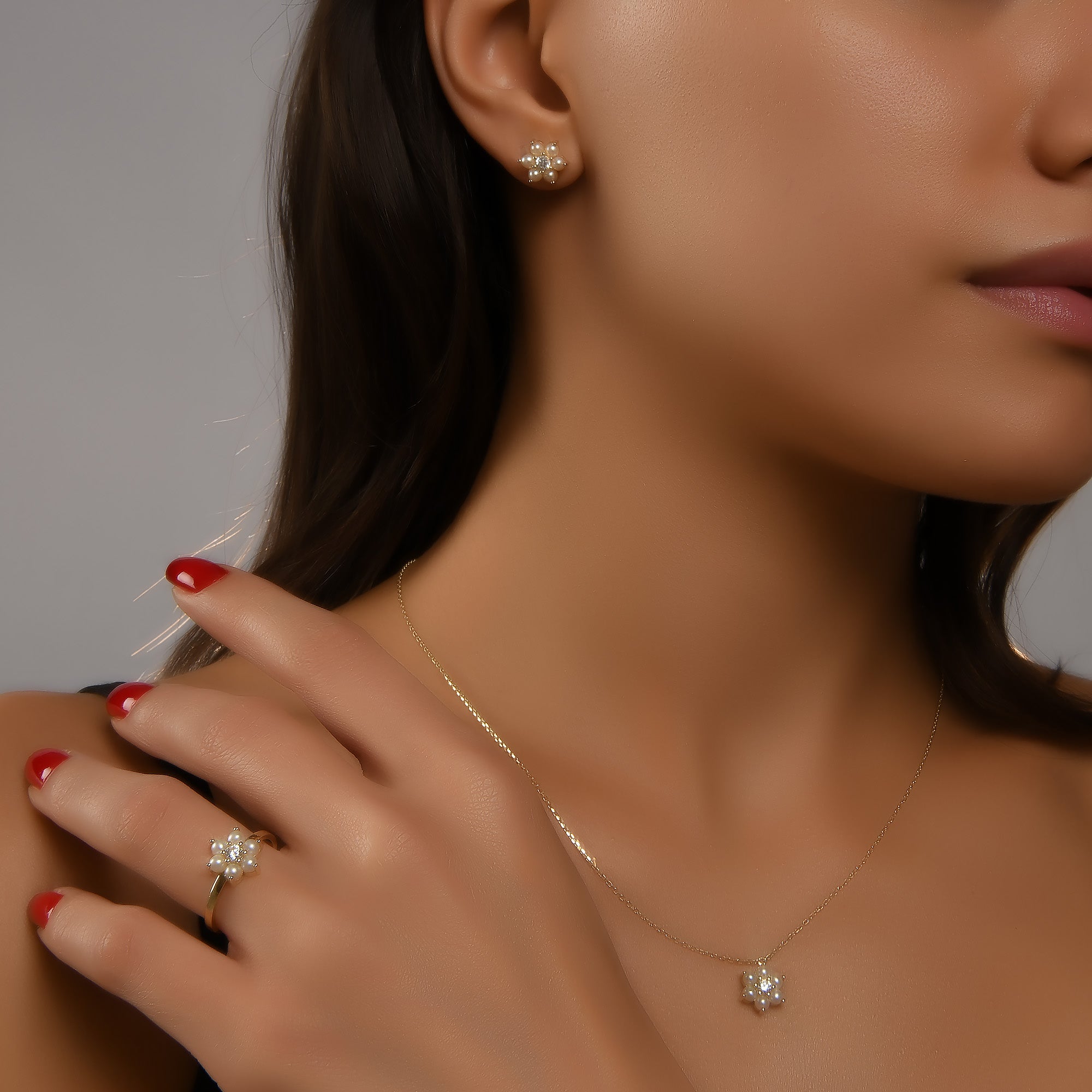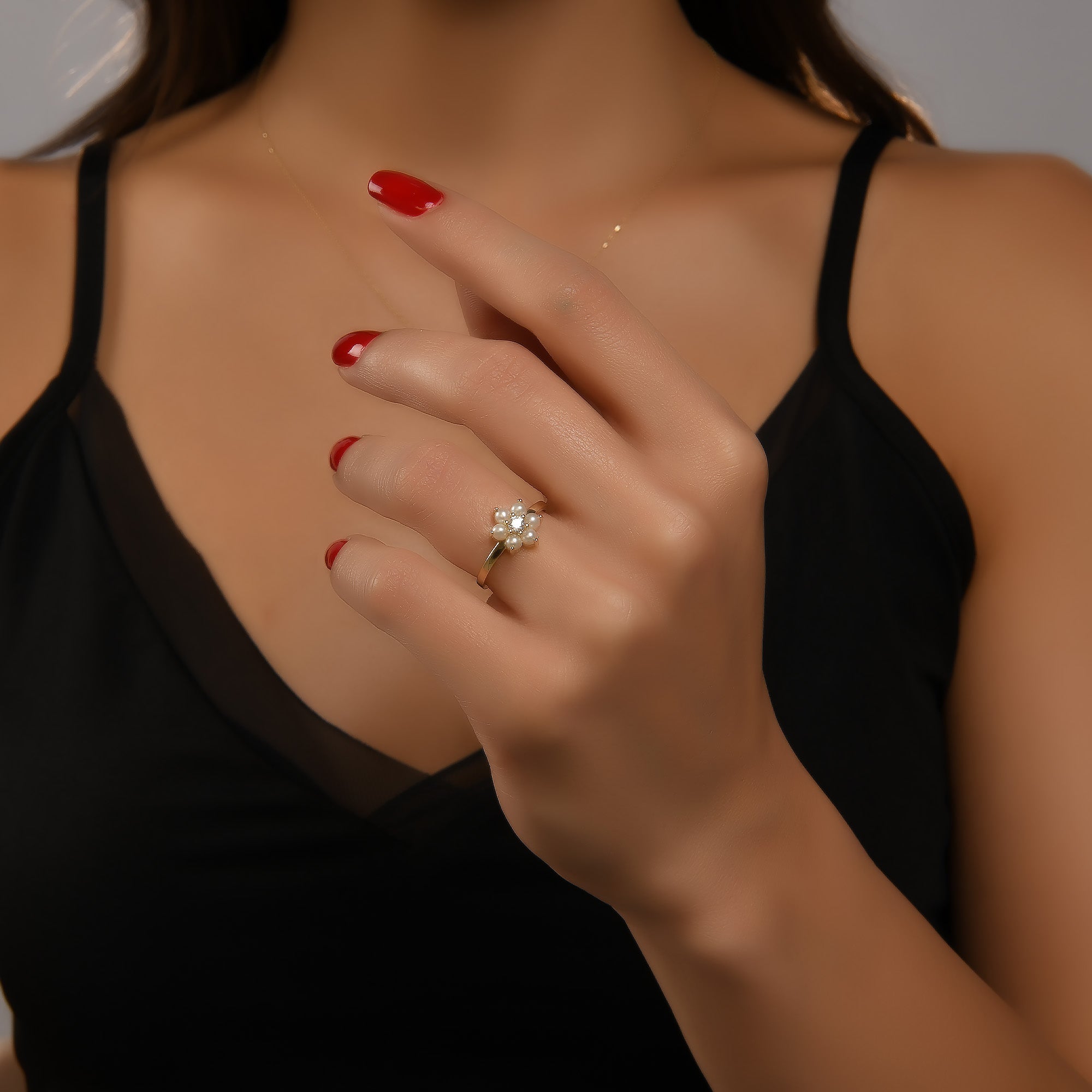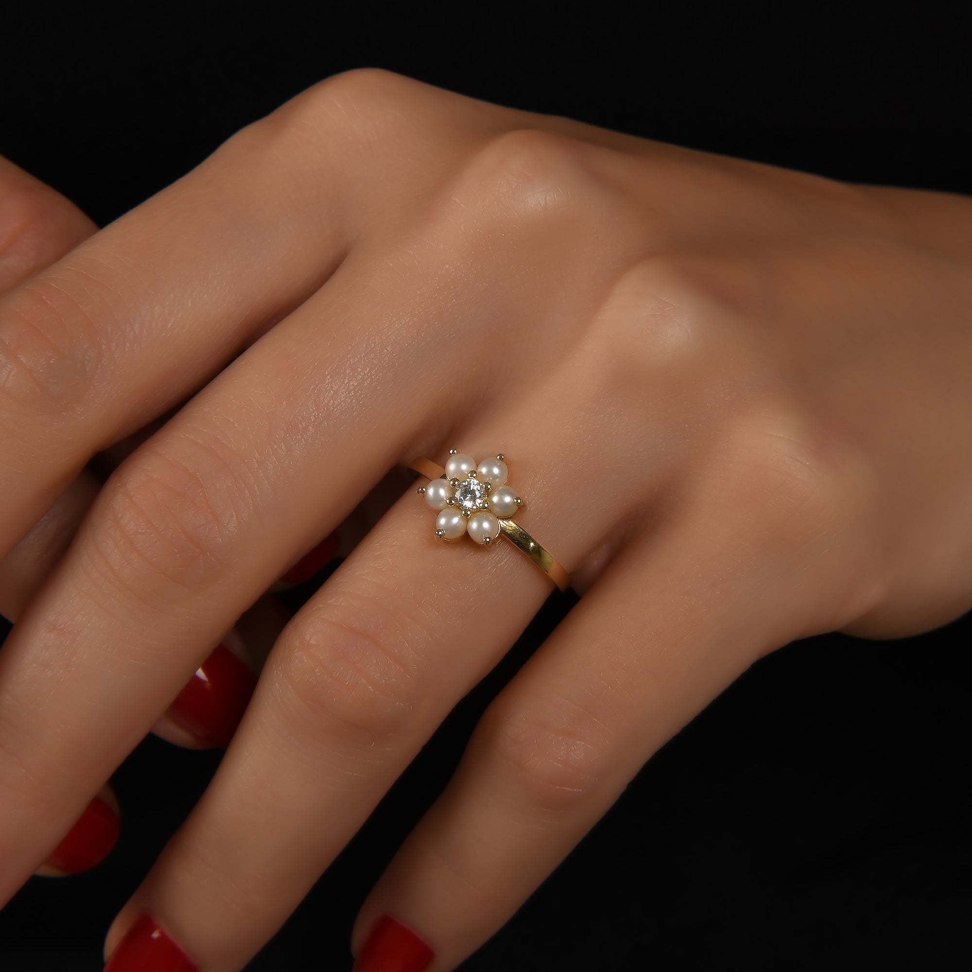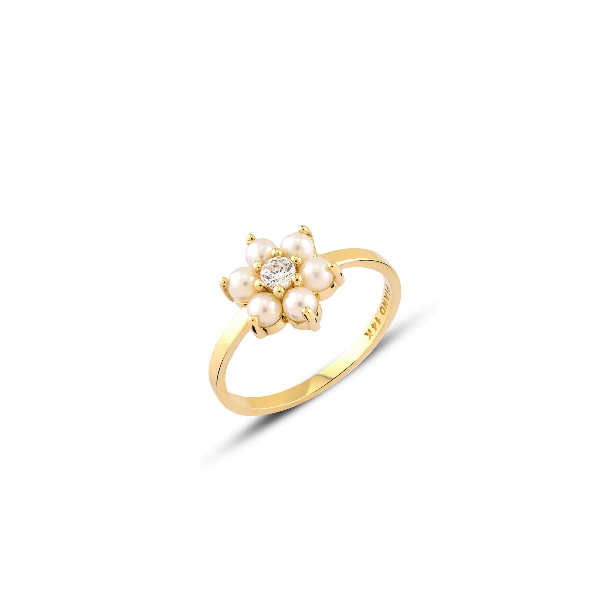 ÇİÇEK FORM İNCİLİ ALTIN YÜZÜK
