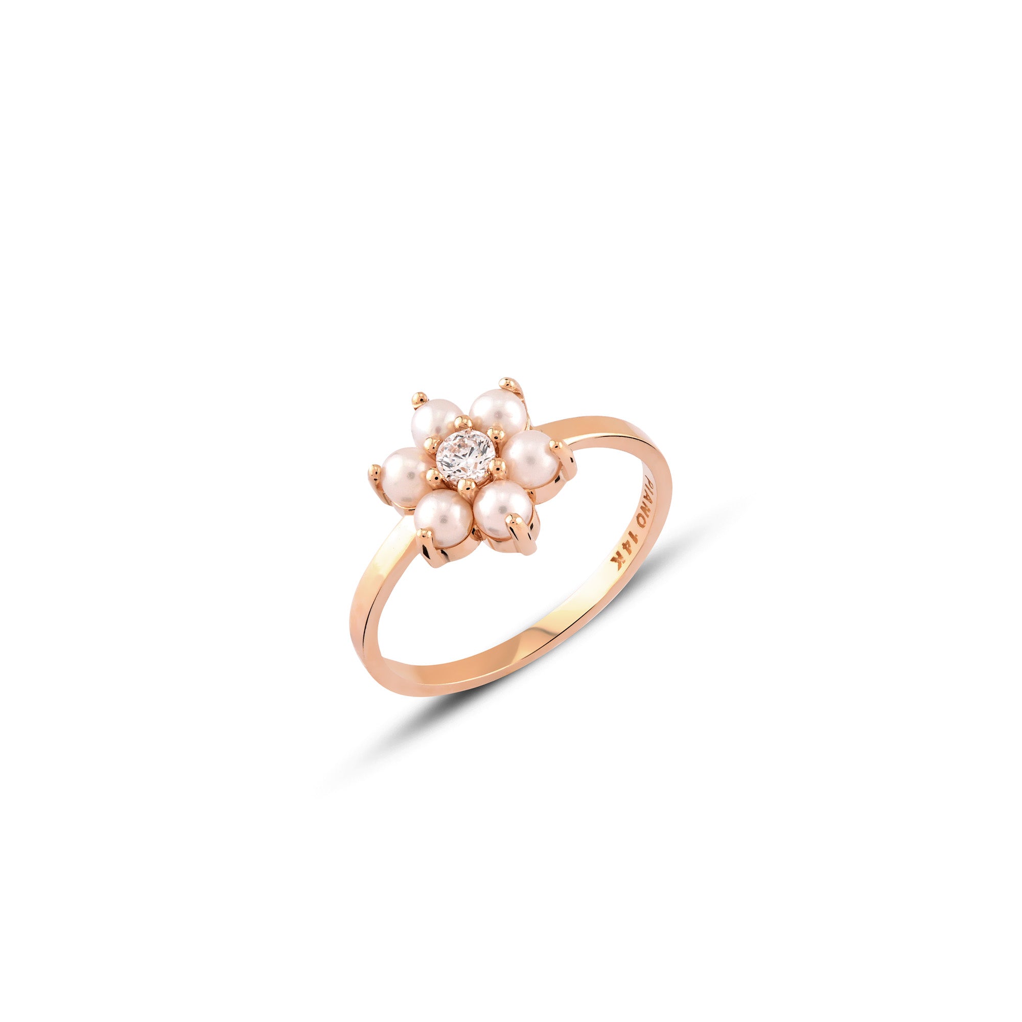Çiçek Form İncili Altın Yüzük / 14 Ayar Rose Altın