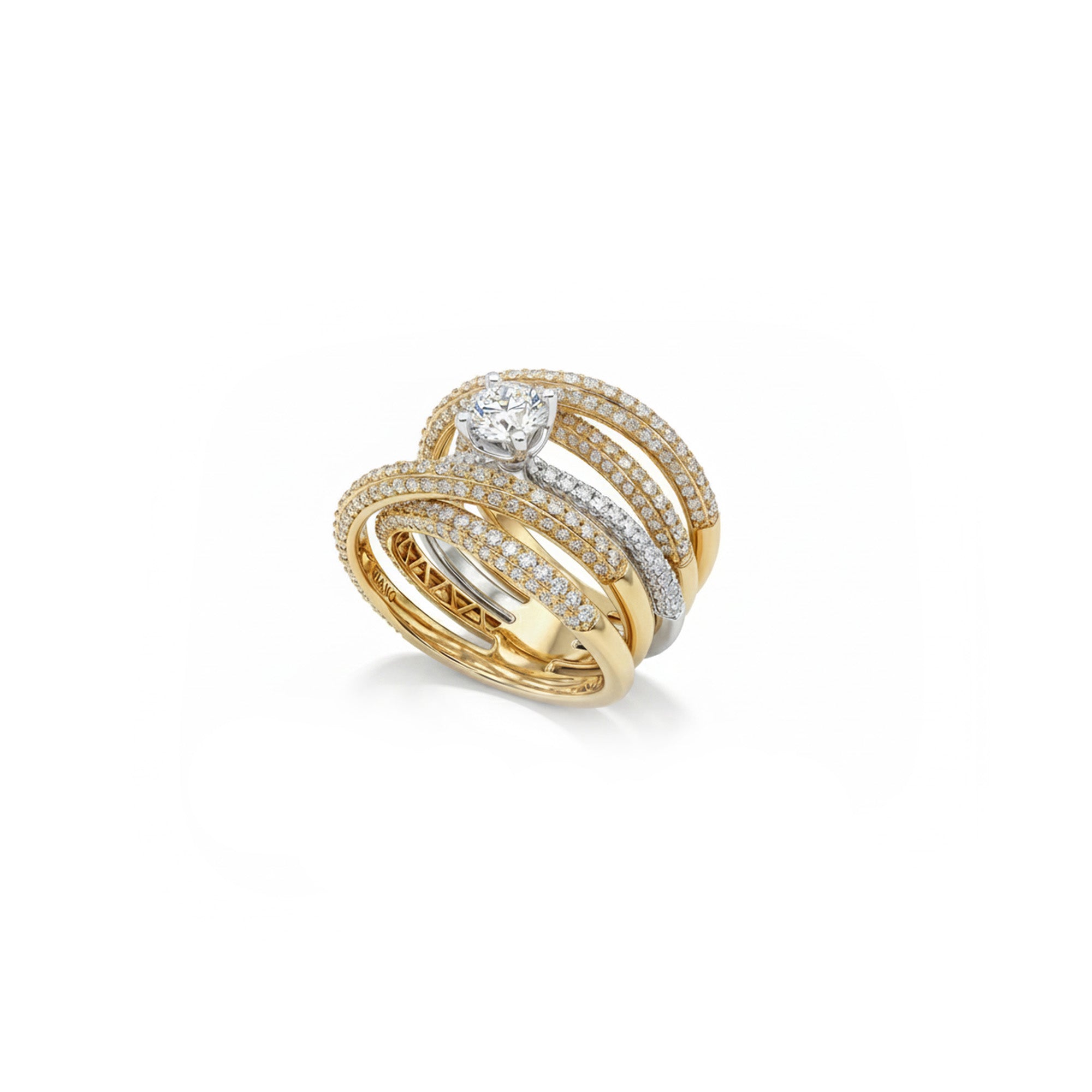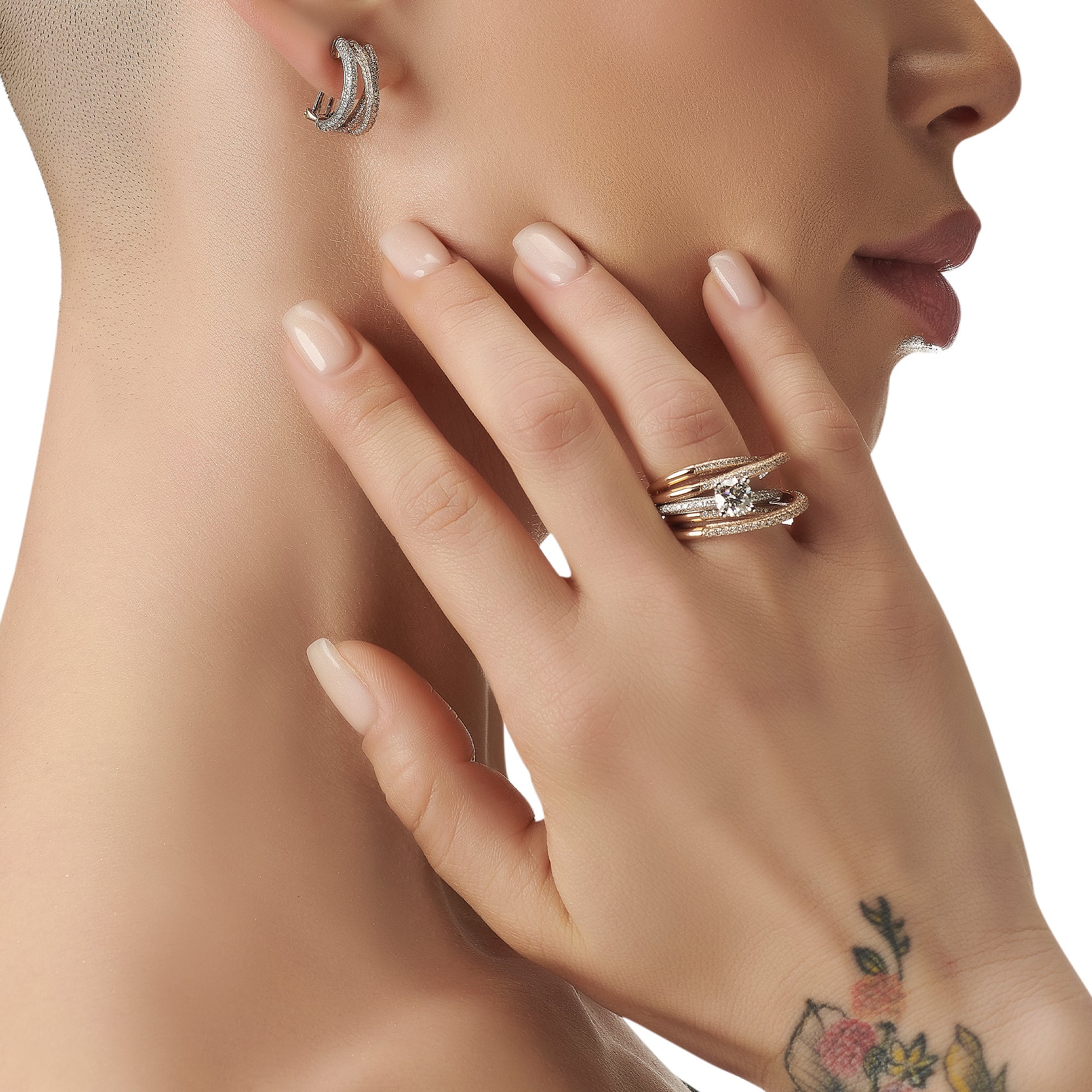 İç İçe Tasarım Tek Taşlı Pırlanta Yüzük