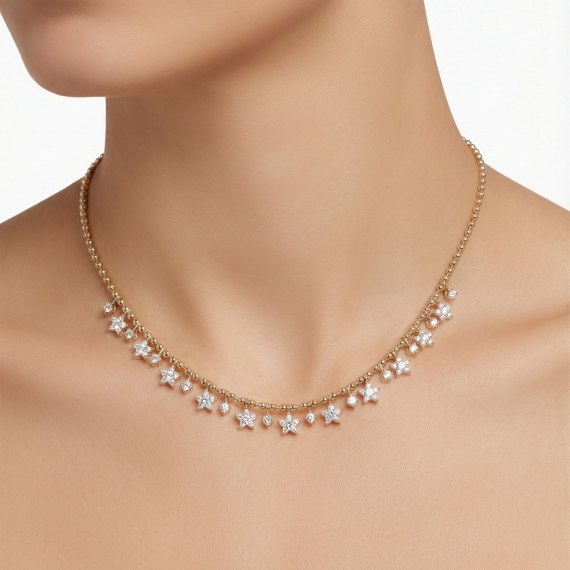 Dorikalı Sallantılı Yıldızlar Figürlü Pırlanta Kolye