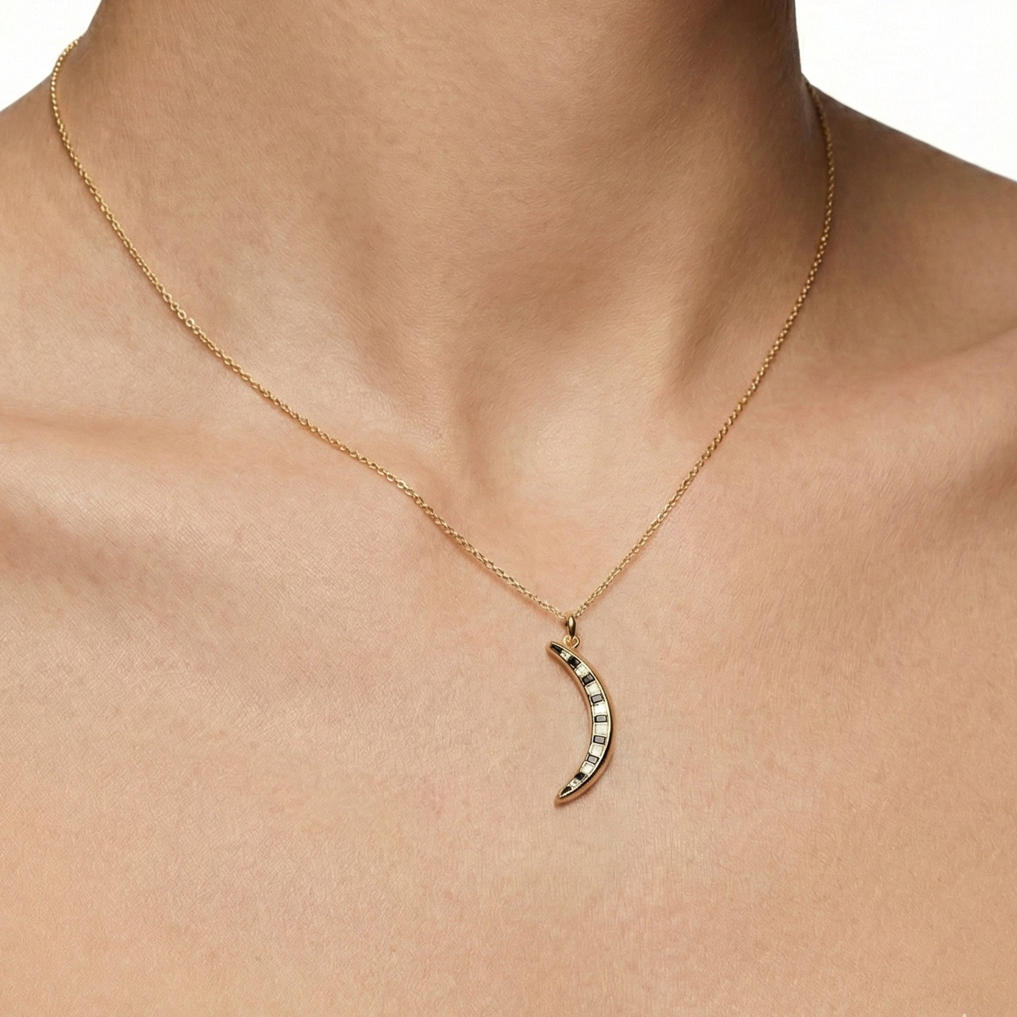 Hilal Siyah Beyaz Mineli Altın Kolye