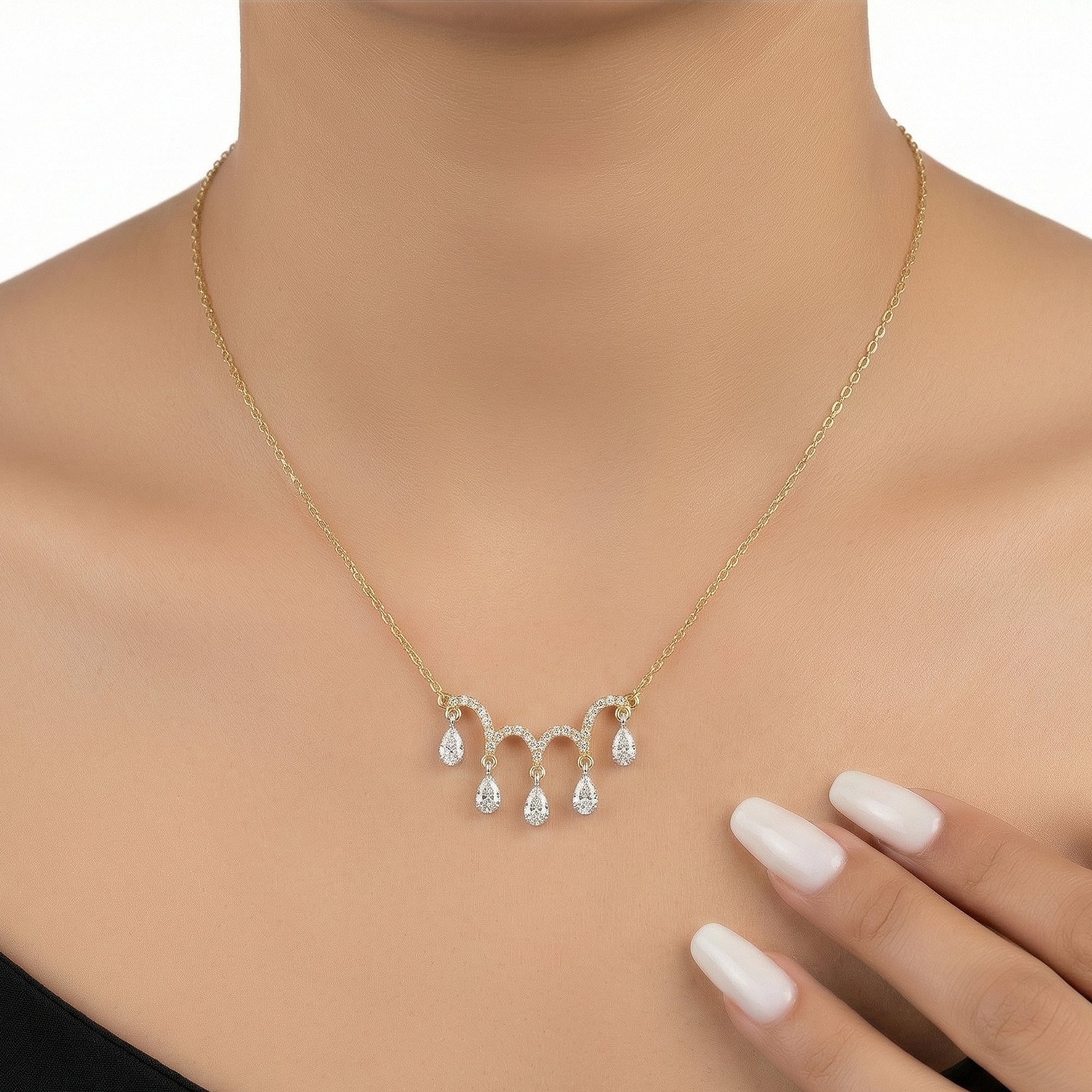 Çizgisel Wave Tasarım Pırlanta Kolye