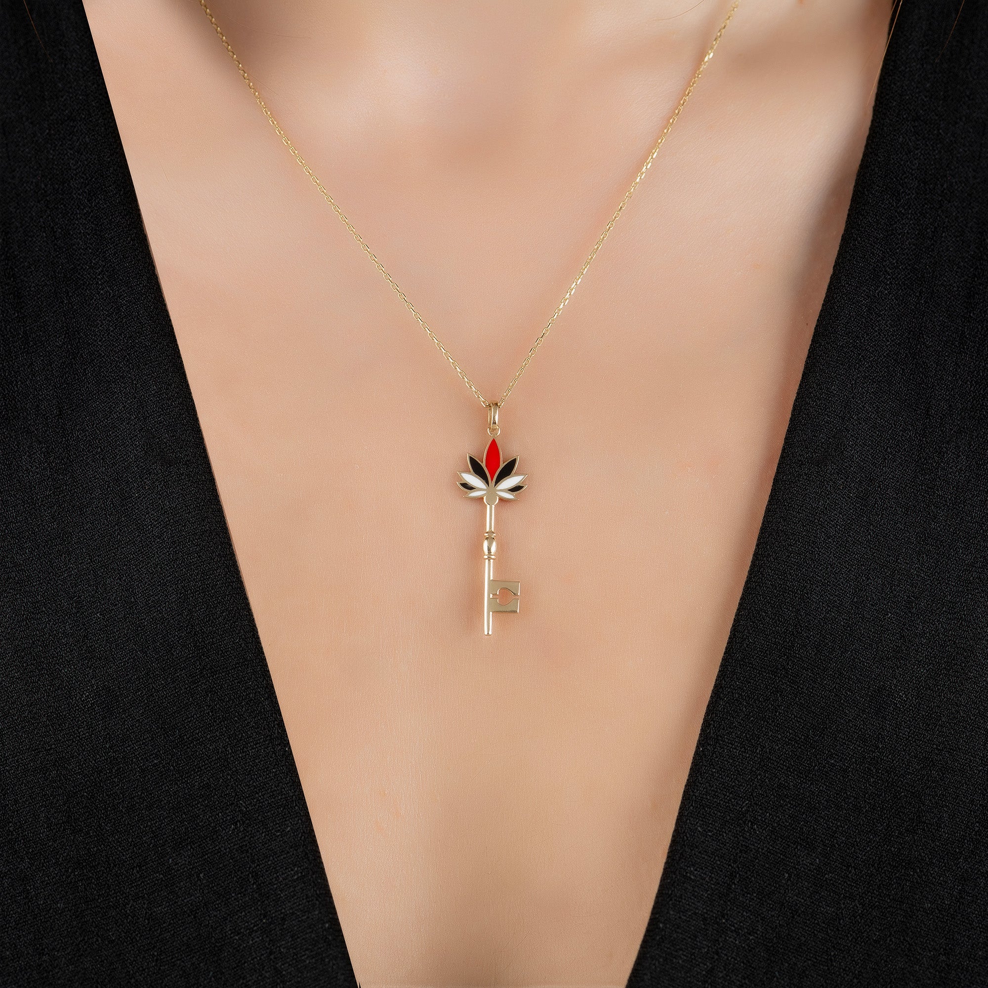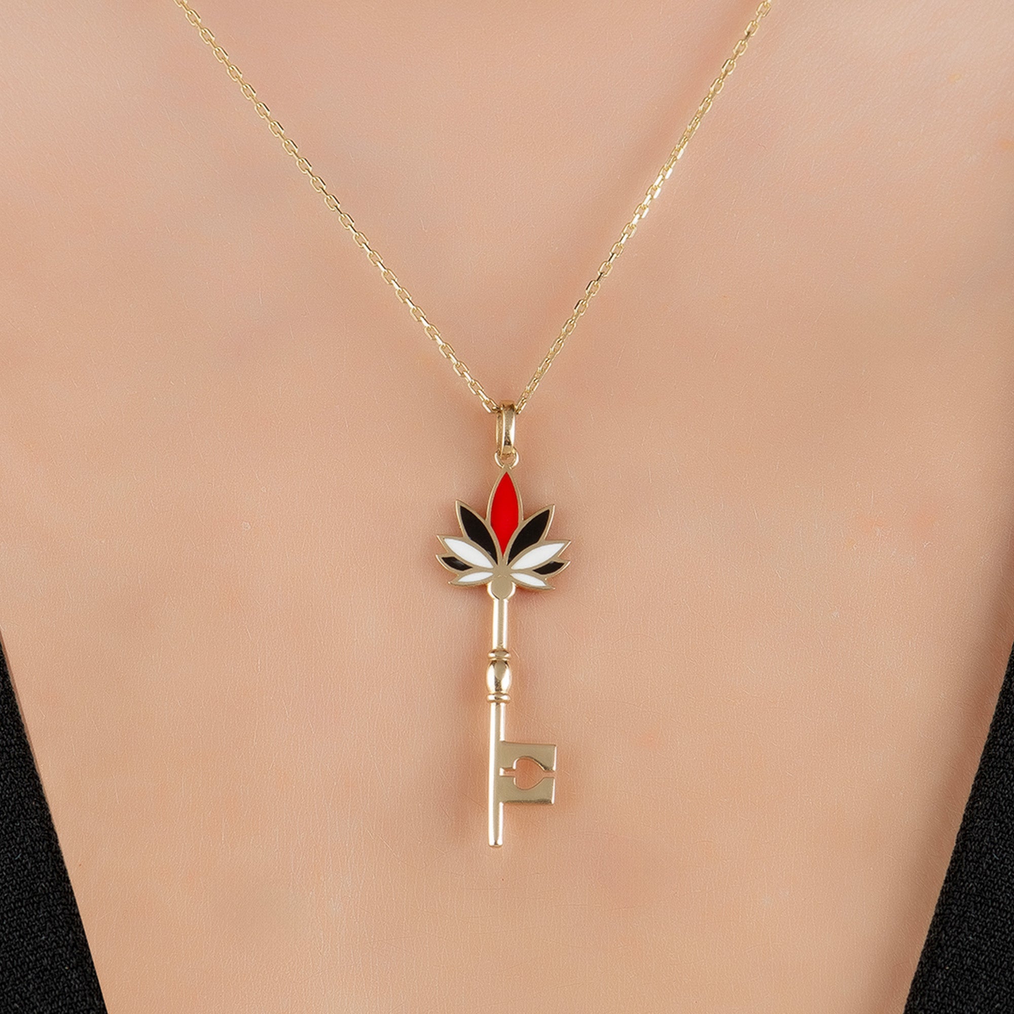 Mineli Çiçek Anahtar Altın Kolye