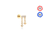 Gaudi Figürlü Zincir Sallantılı Taşlı Yatay Bar Altın Piercing / 14 Ayar Sarı Altın