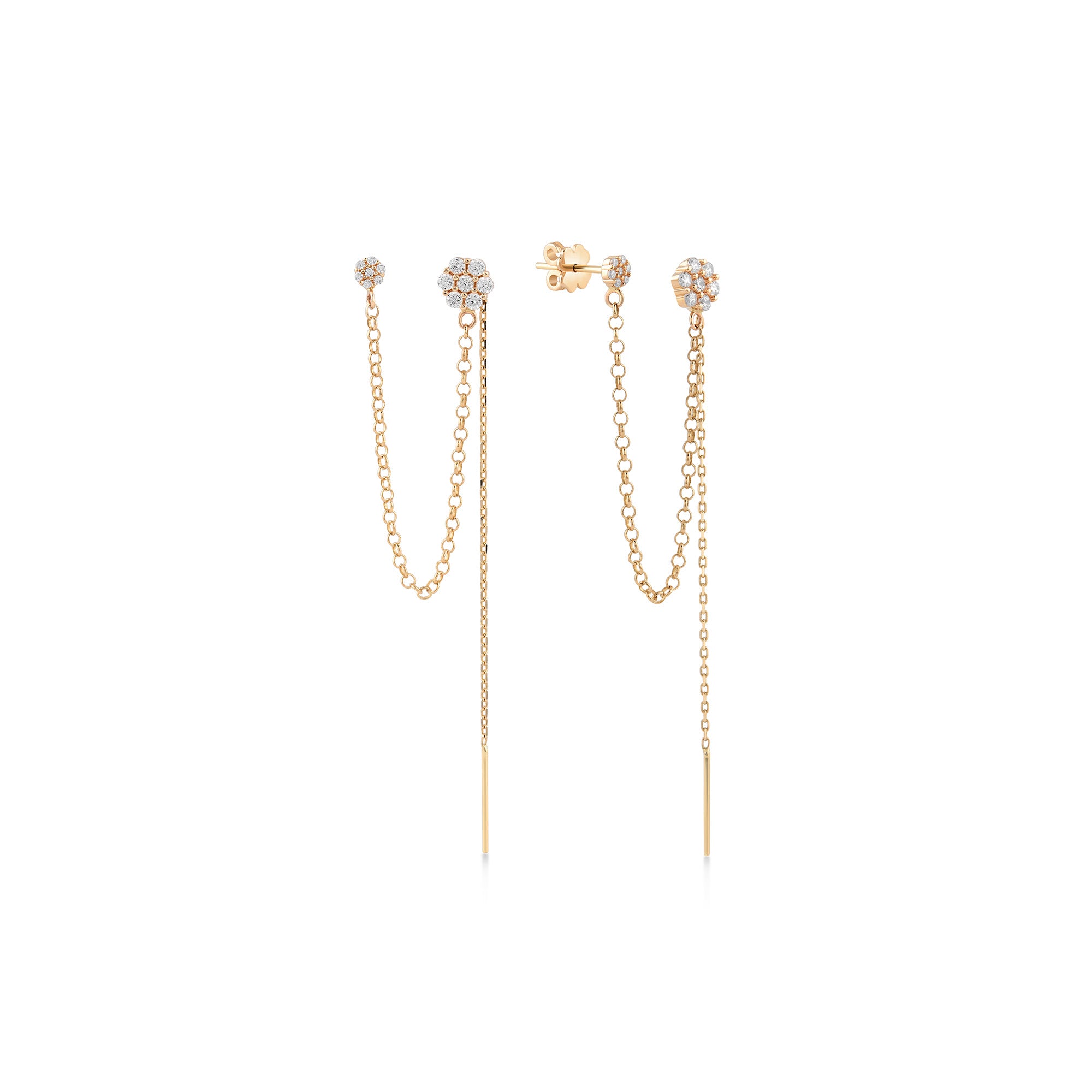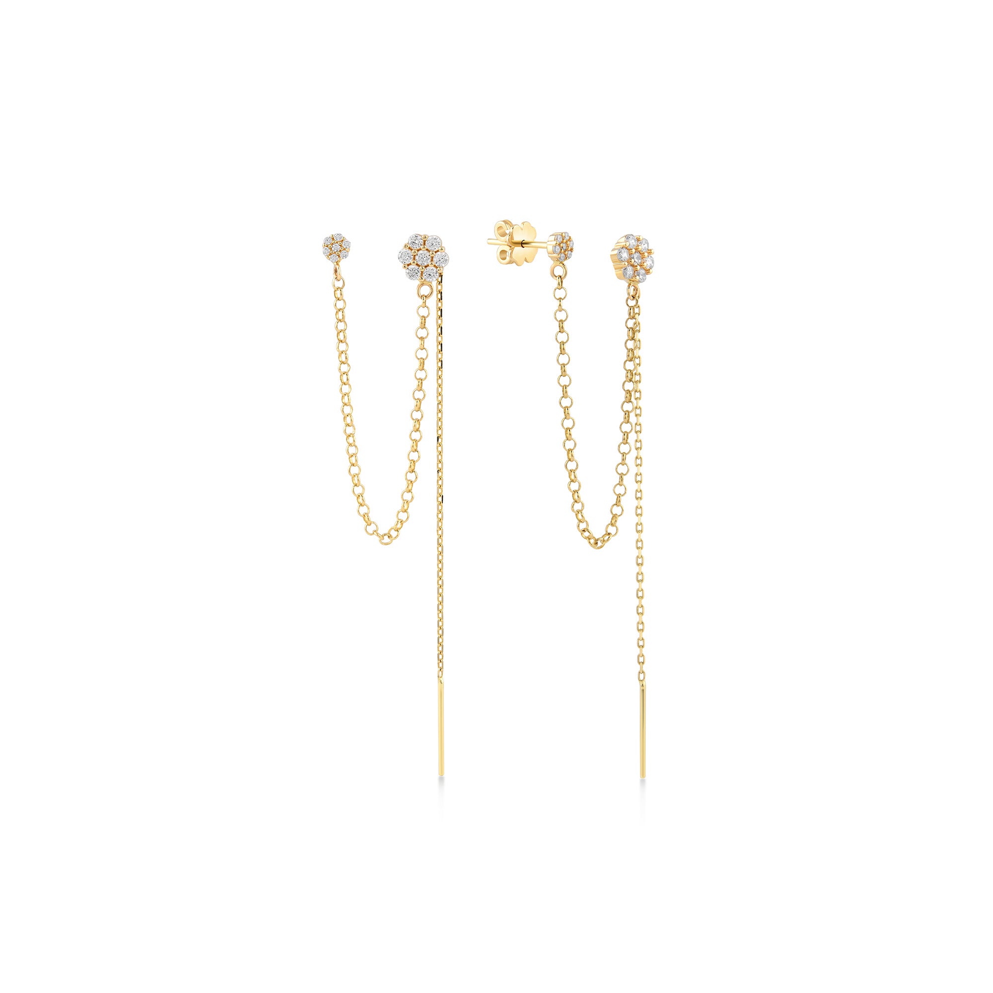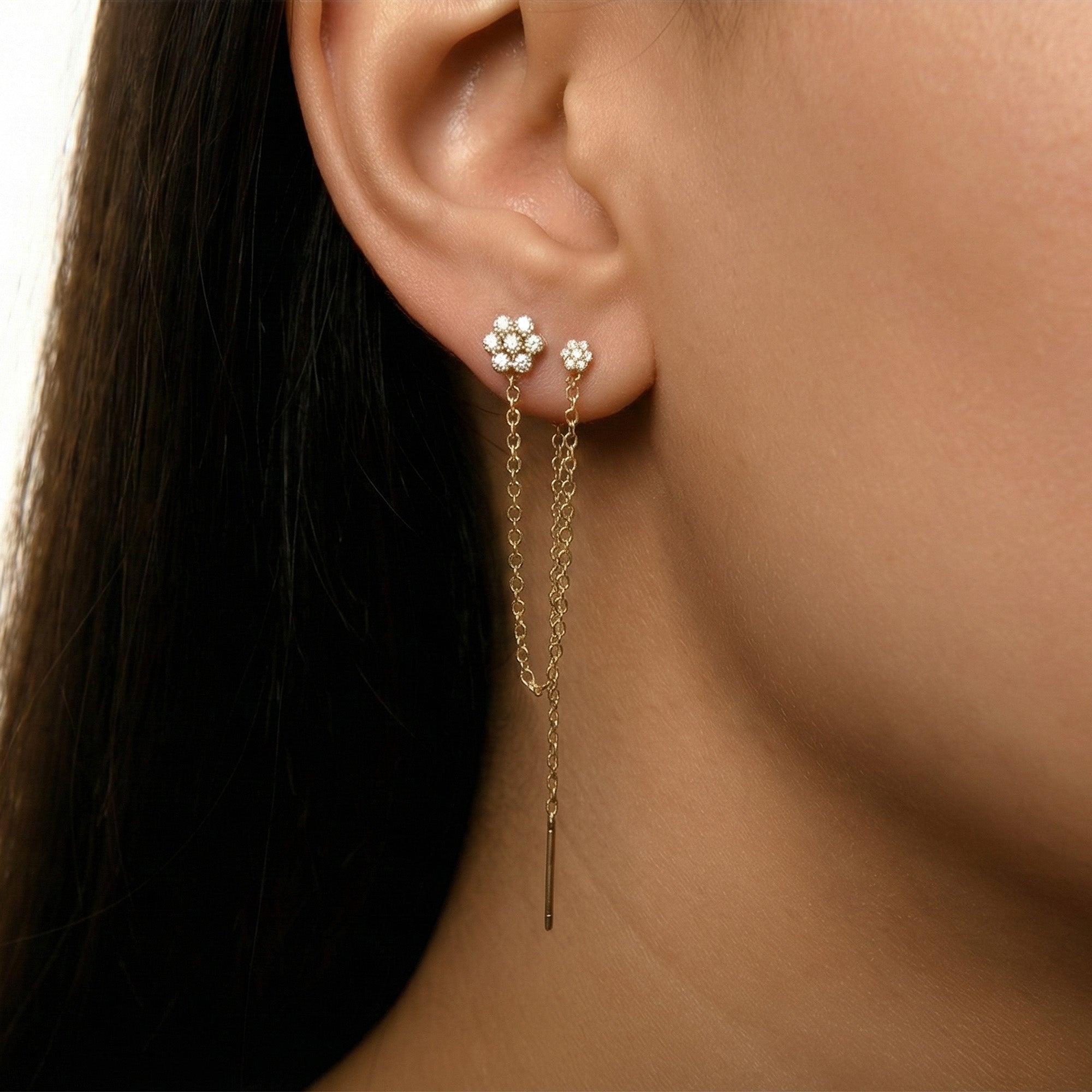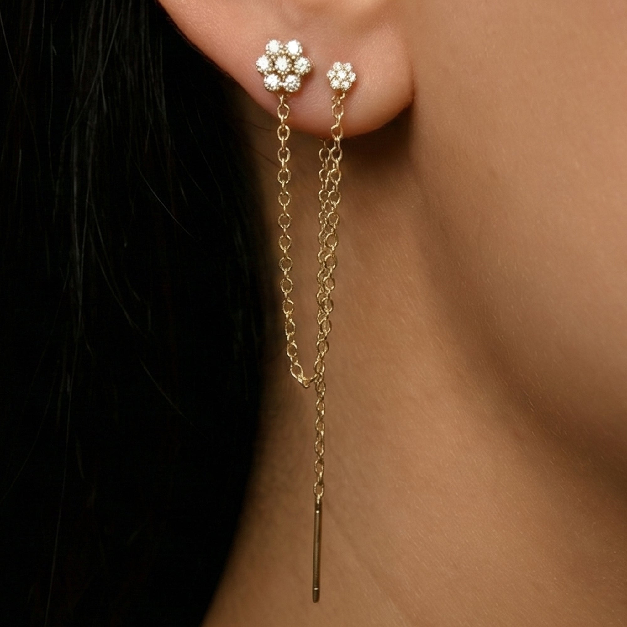 ÇİÇEK ZİNCİR SALLANTILI TAŞLI ALTIN KÜPE