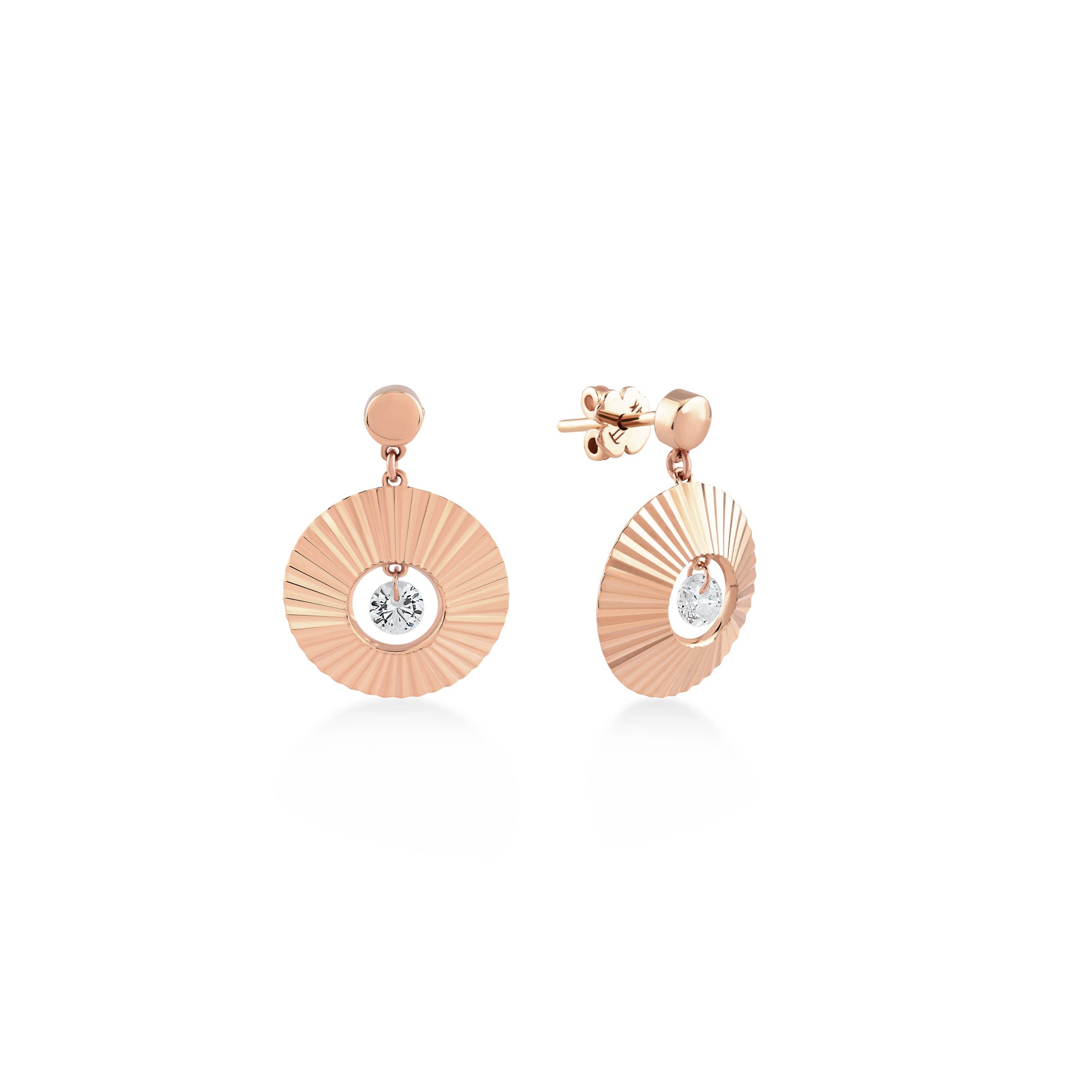 Parasol Tasarım Sallantılı Taşlı Altın Küpe / 14 Ayar Rose Altın