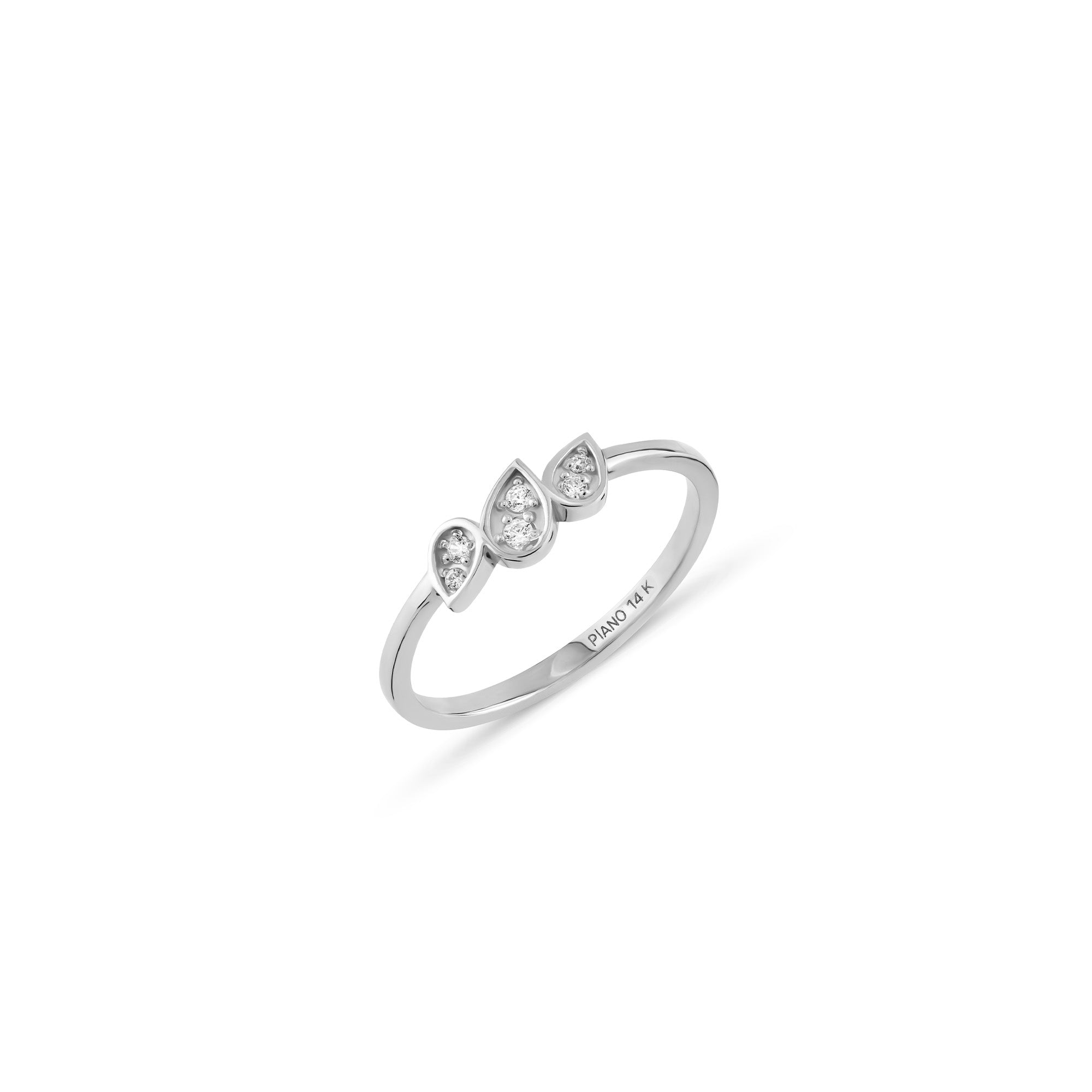 Üçlü Yan Yana Damla Figürlü Taşlı Altın Yüzük / 14 Ayar Beyaz Altın