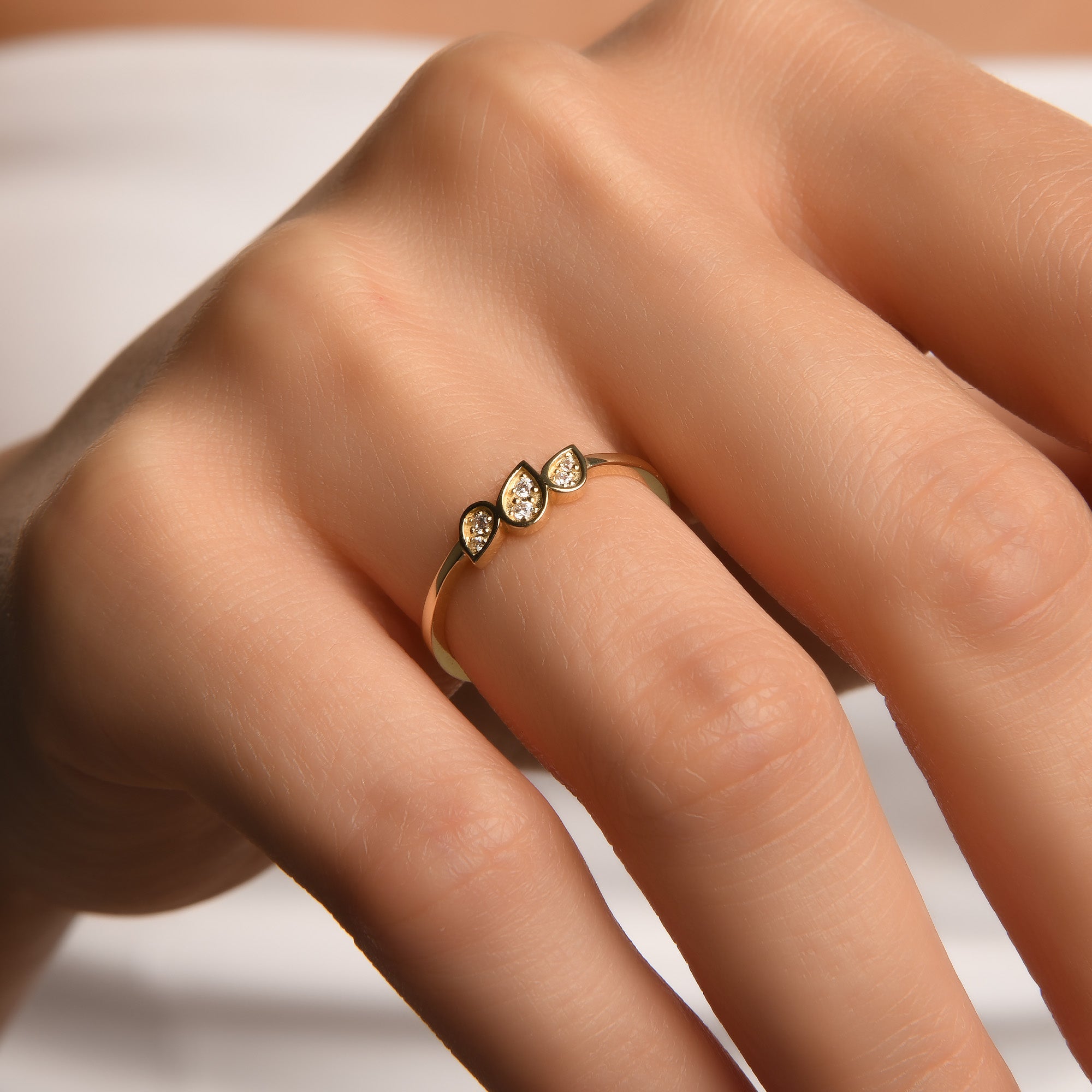 ÜÇLÜ DAMLA FİGÜR TAŞLI ALTIN YÜZÜK
