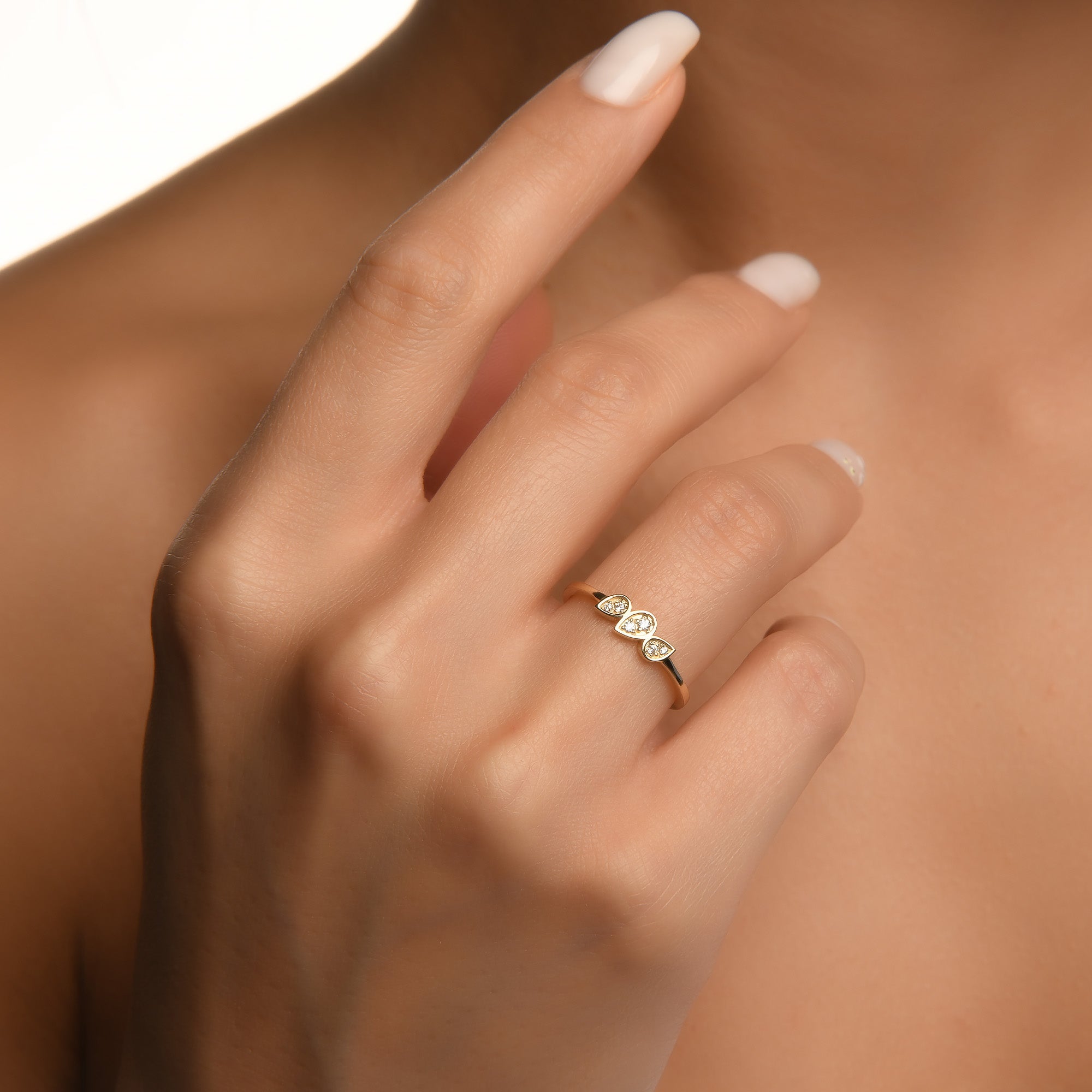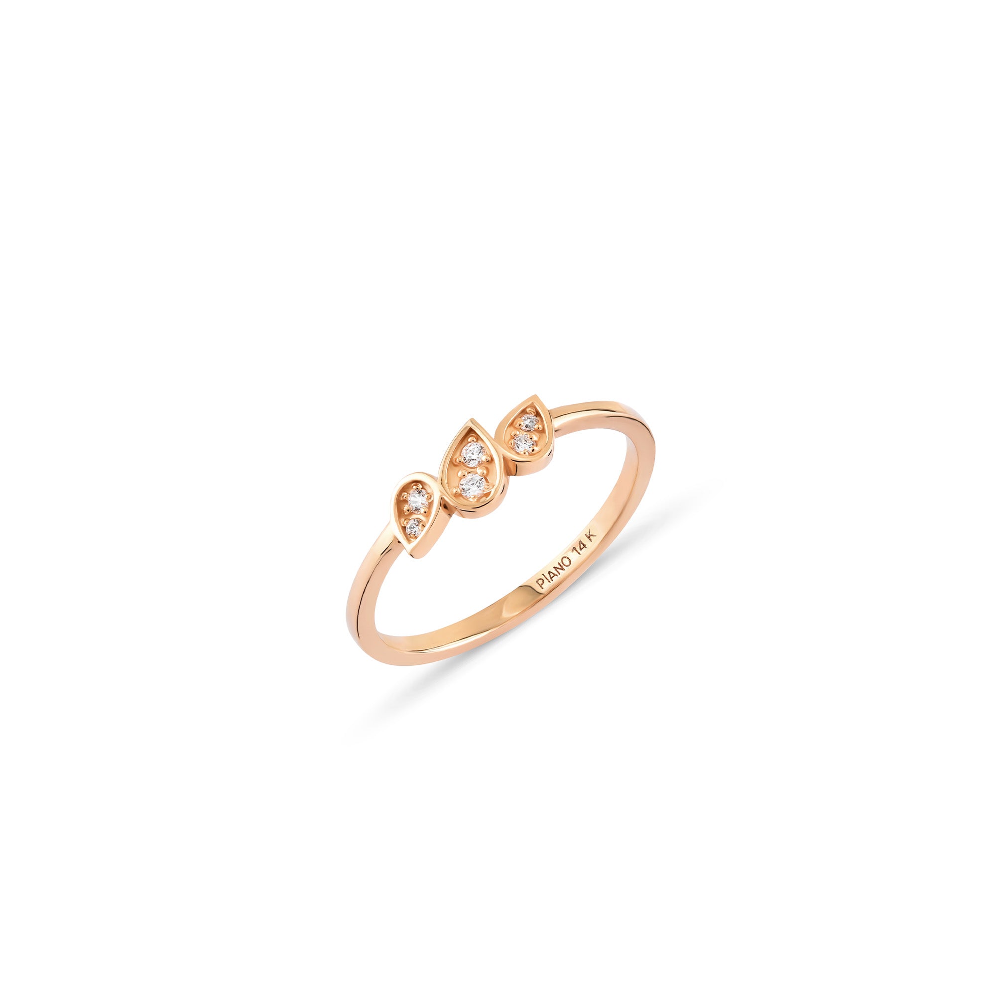 Üçlü Yan Yana Damla Figürlü Taşlı Altın Yüzük / 14 Ayar Rose Altın