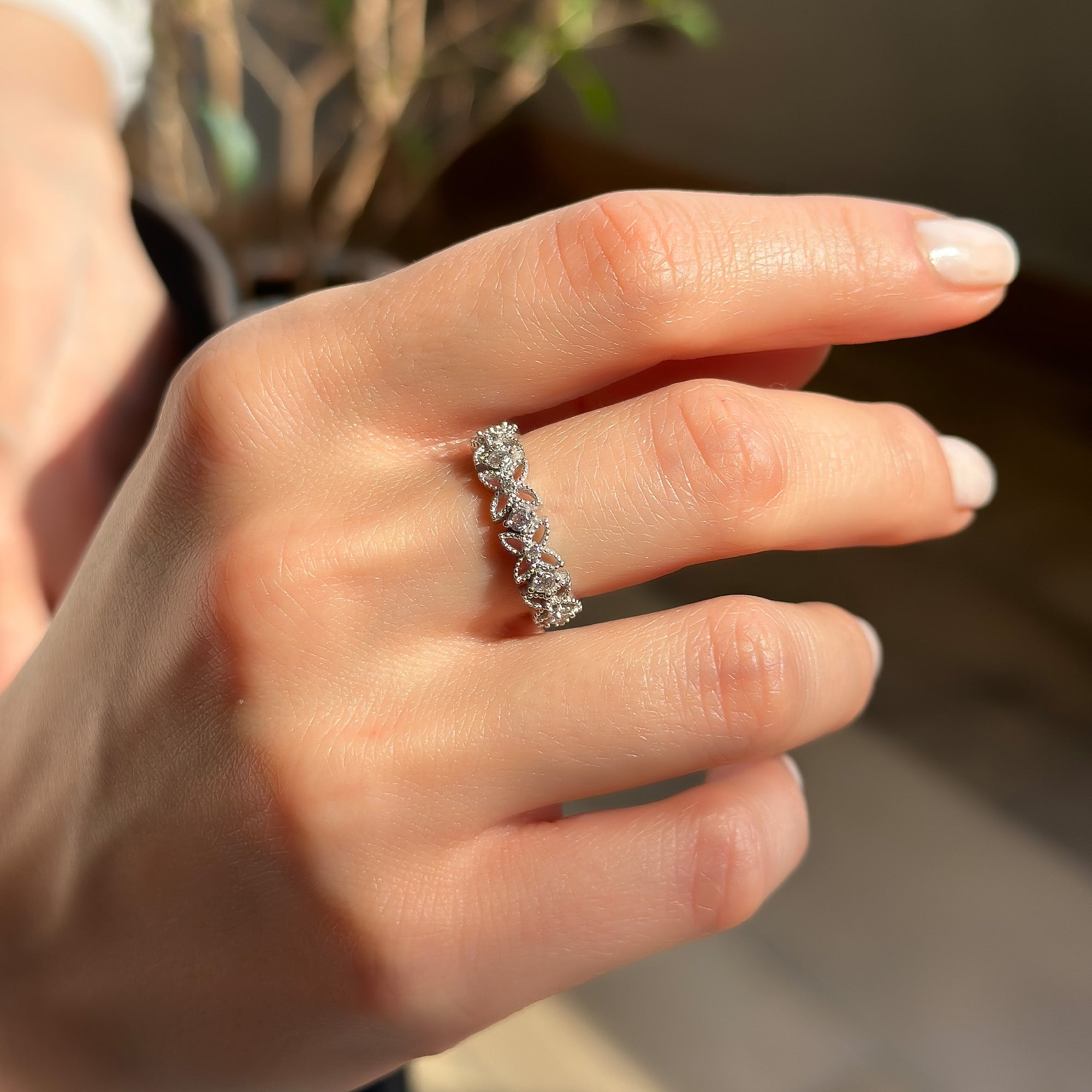 Yıldızlar Yolu Taşlı Altın Yüzük / 14 Ayar Beyaz Altın