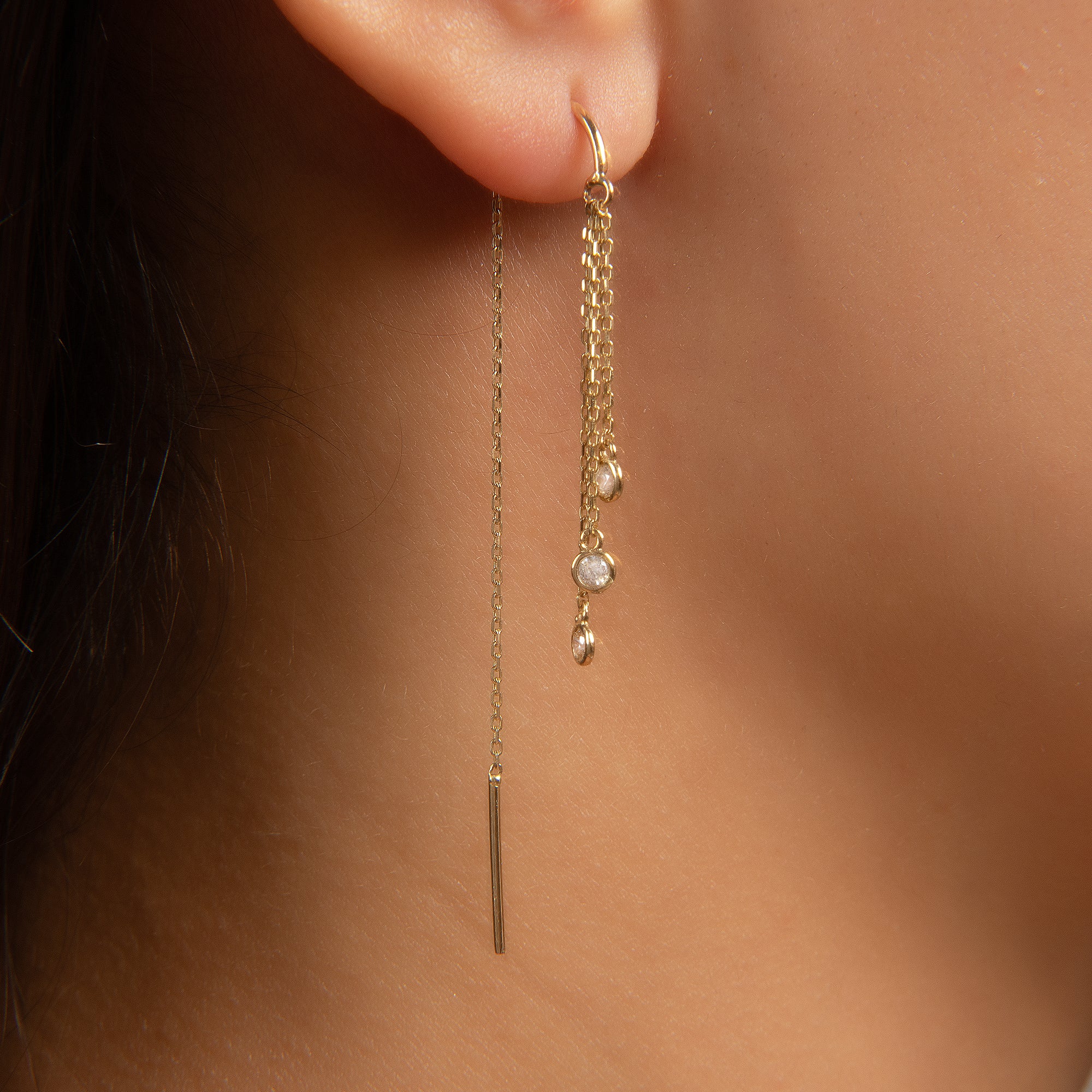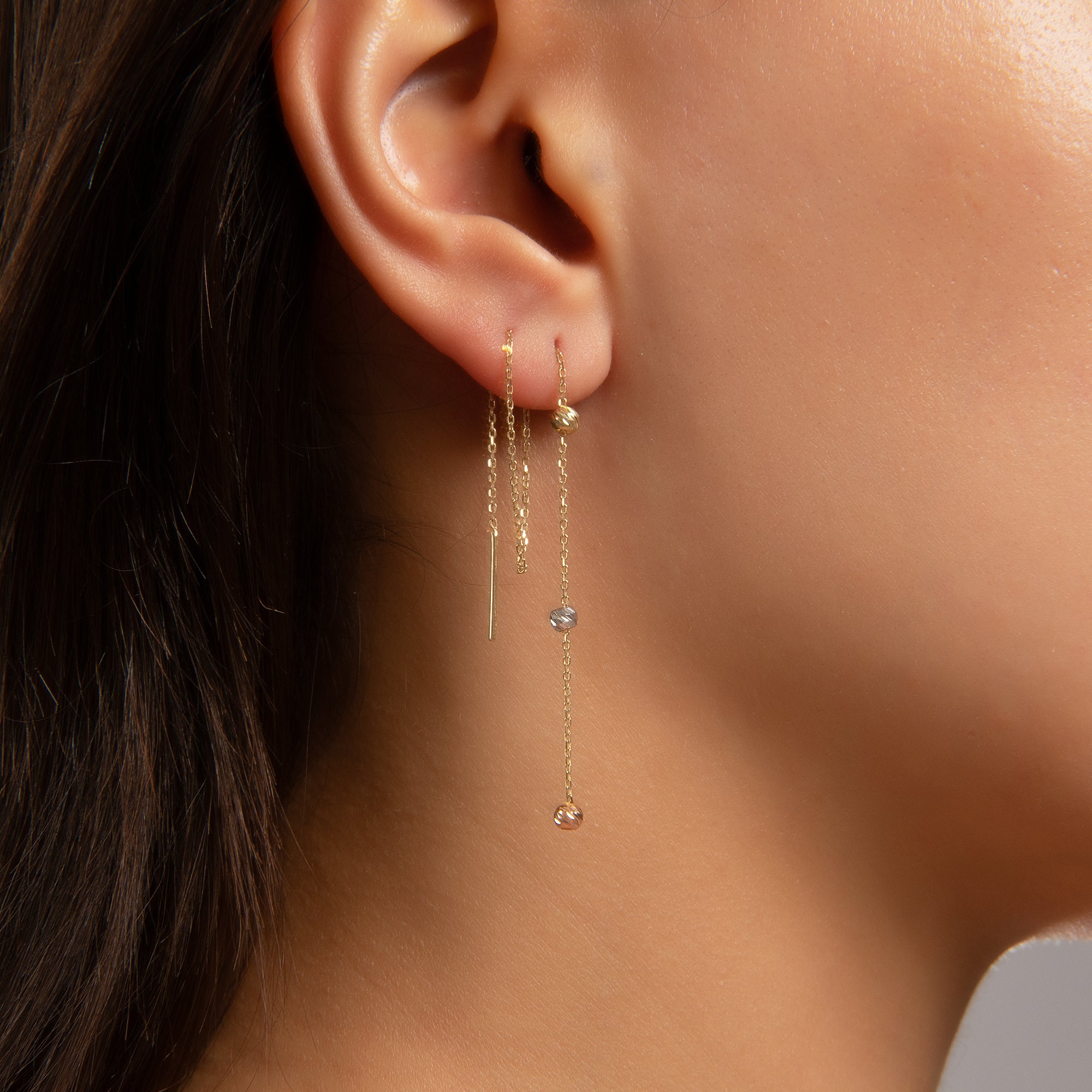 Beyonce Three Pieces Colorful Dorika Ball Dangle Chain Single Gold Earring