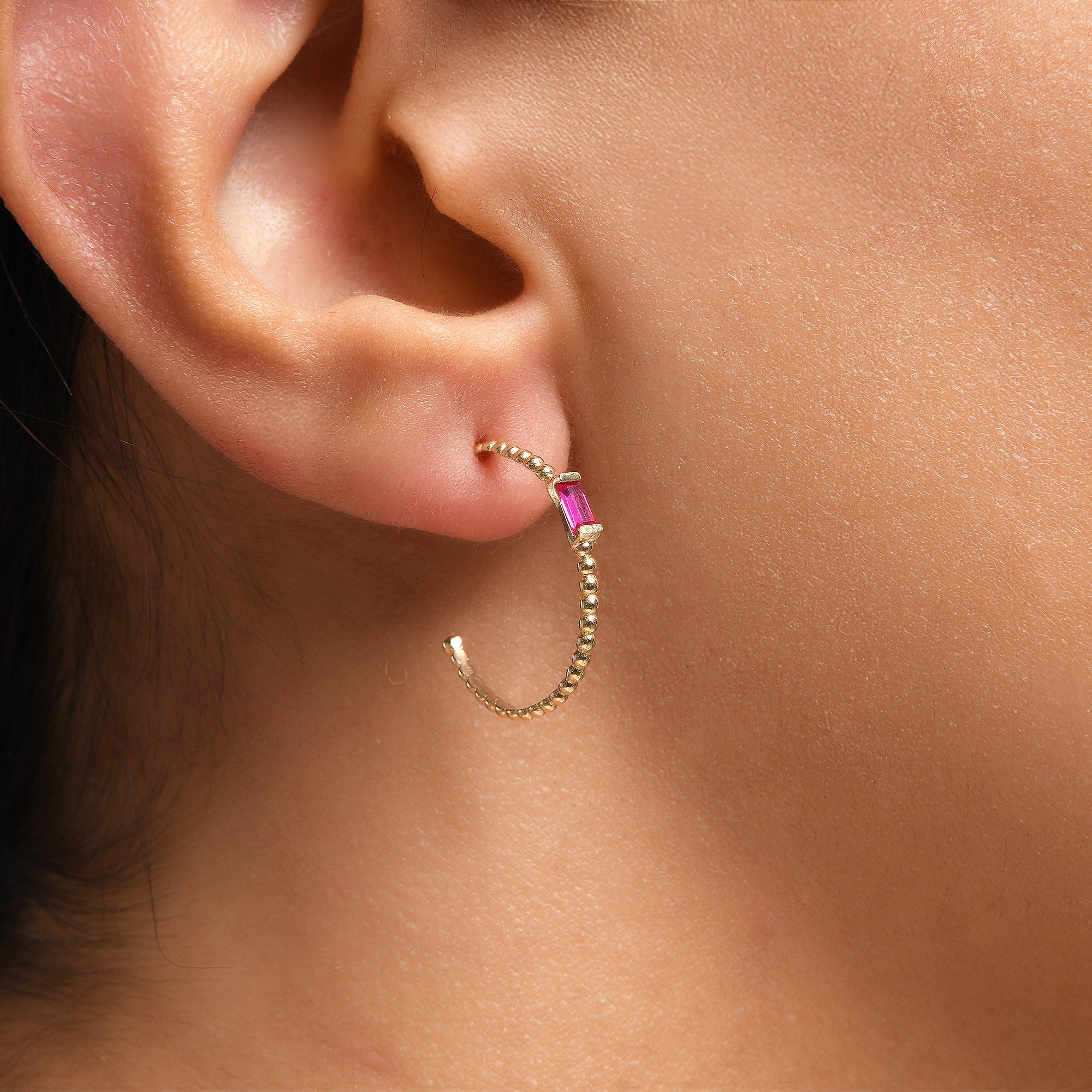 Spor şıklığında dahi kullanabileceğiniz yakut küpe; jean, tişört ve spor ayakkabı ile yapılan kombinlerde casual bir şıklık sunuyor. Ofis şıklığına da kolaylıkla uyarlanabilen yakut küpeyi kalem etek ve gömlekle tamamlayabilirsiniz.