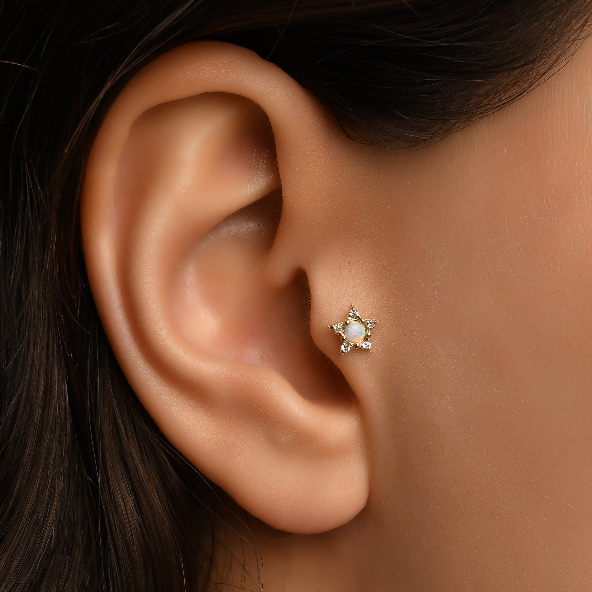 Star Gold Piercing with Opalite and Tourmaline Stone Options