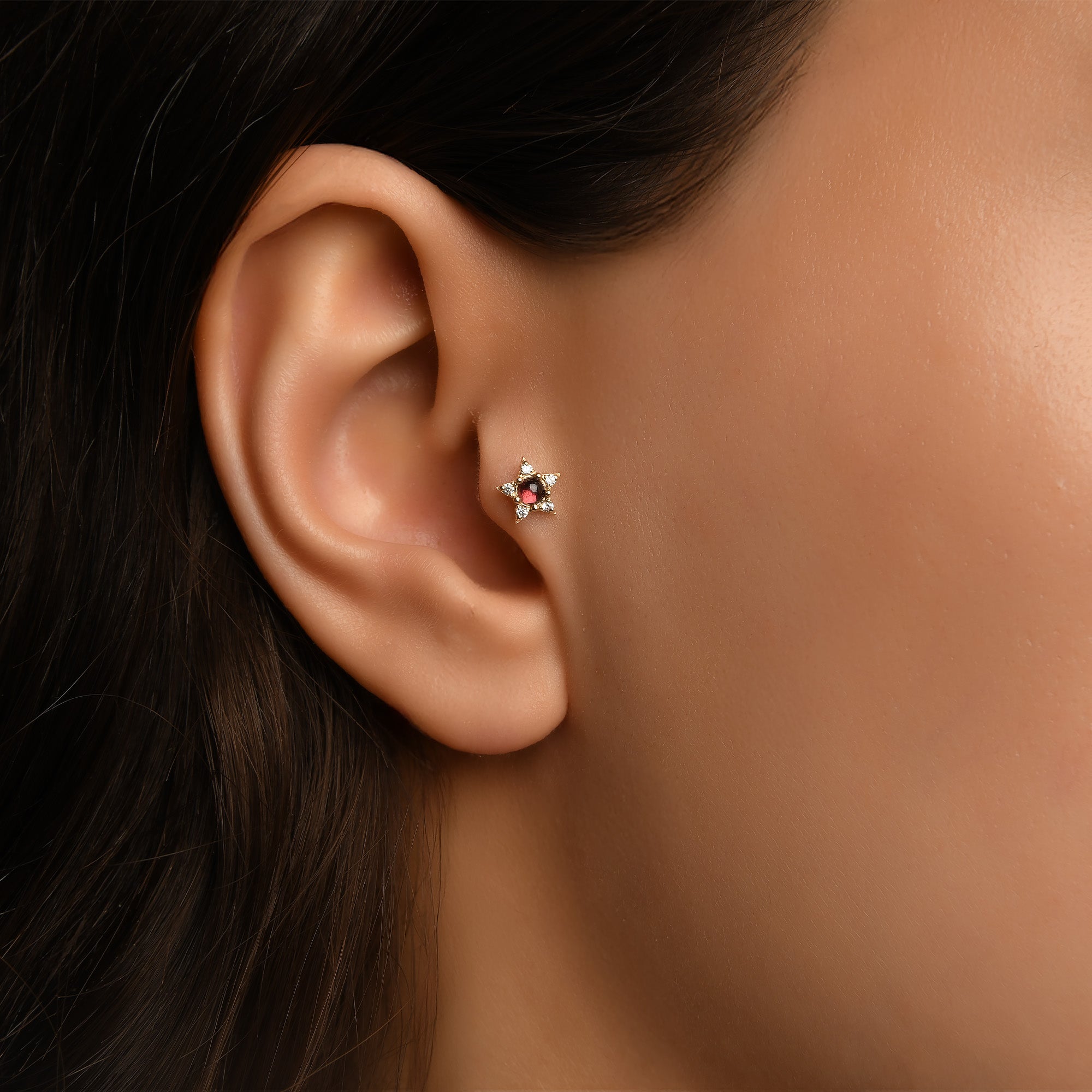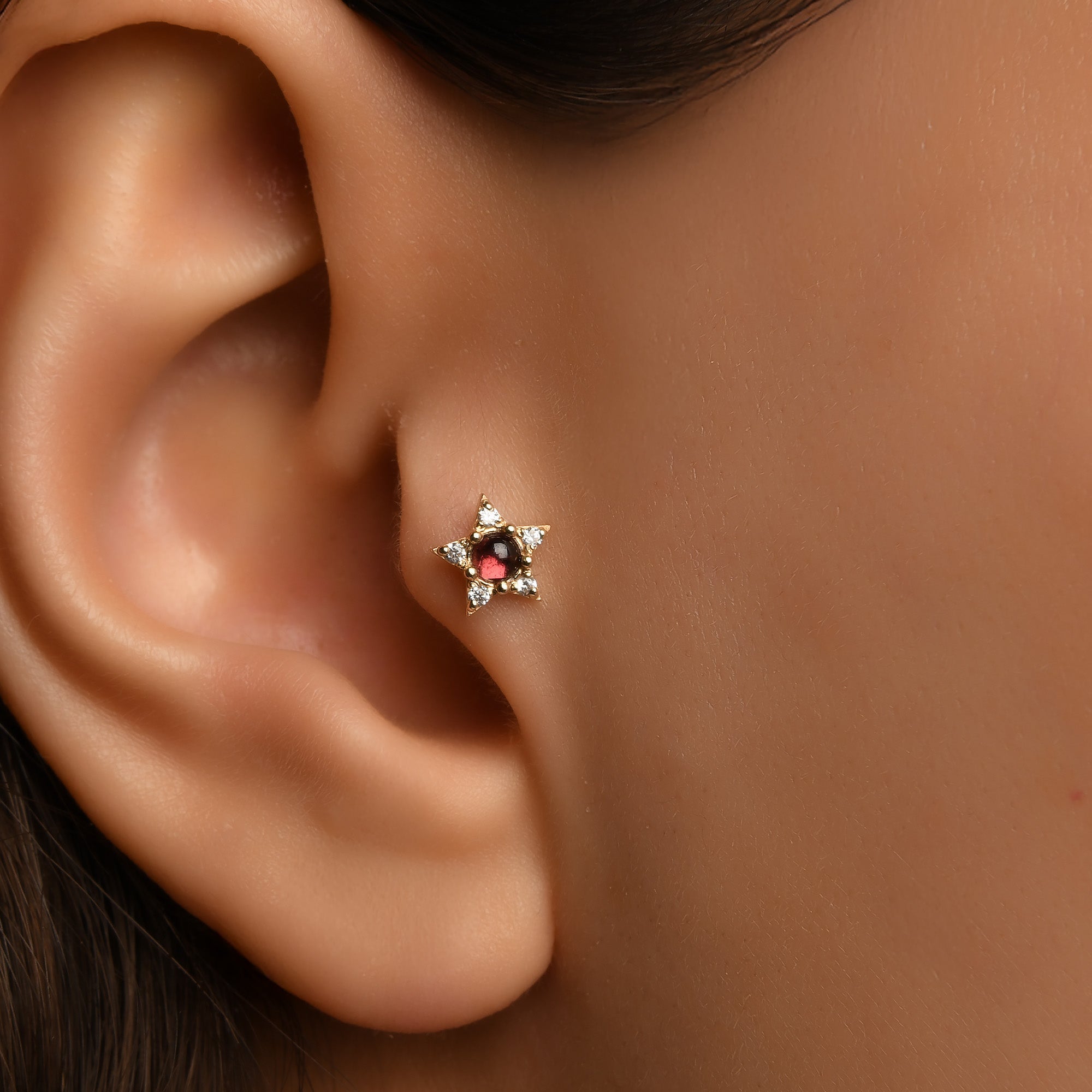 STAR GOLD PIERCING WITH OPALITE AND TOURMALINE STONE OPTIONS.