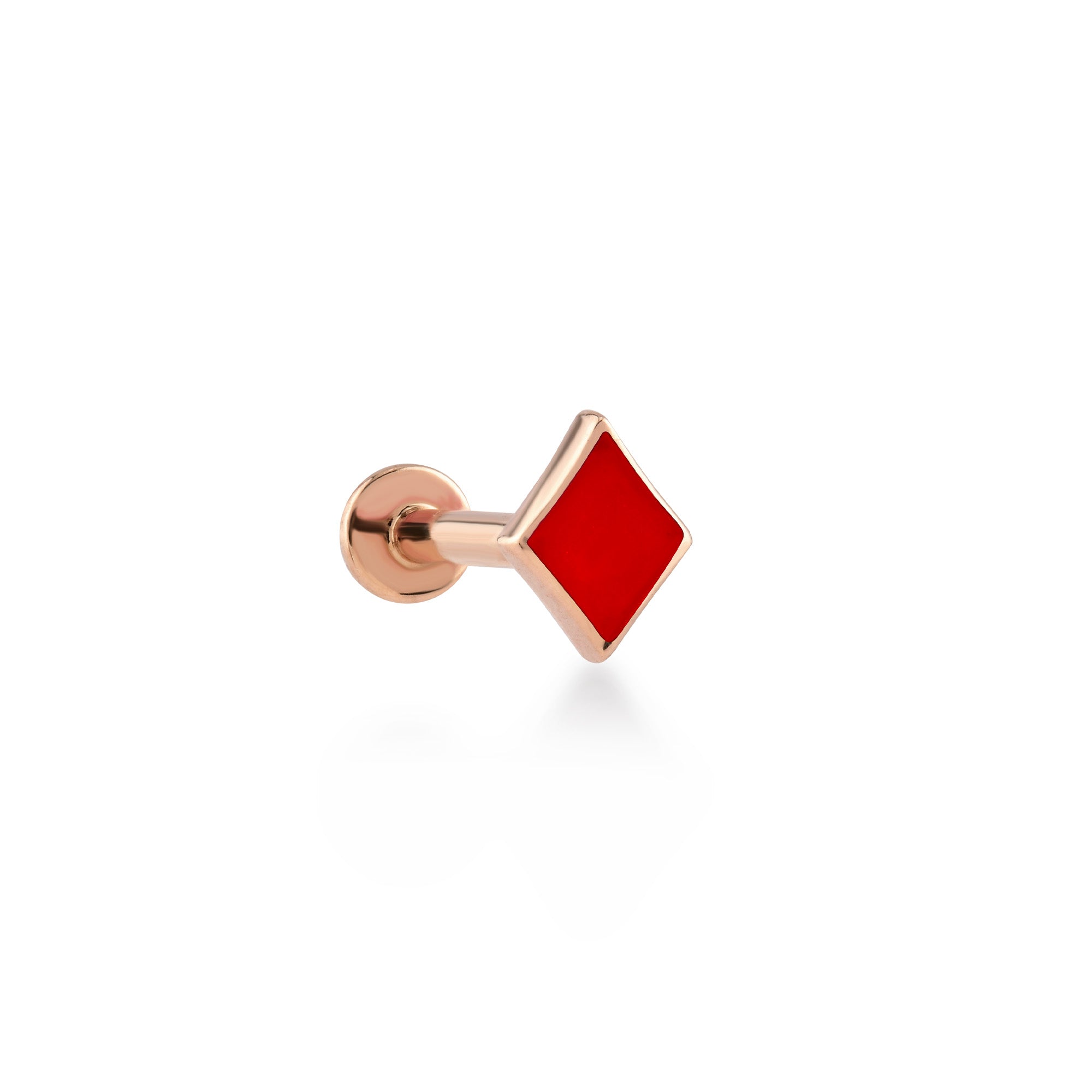 Karo Kırmızı Mineli Altın Piercing / 14 Ayar Rose Altın