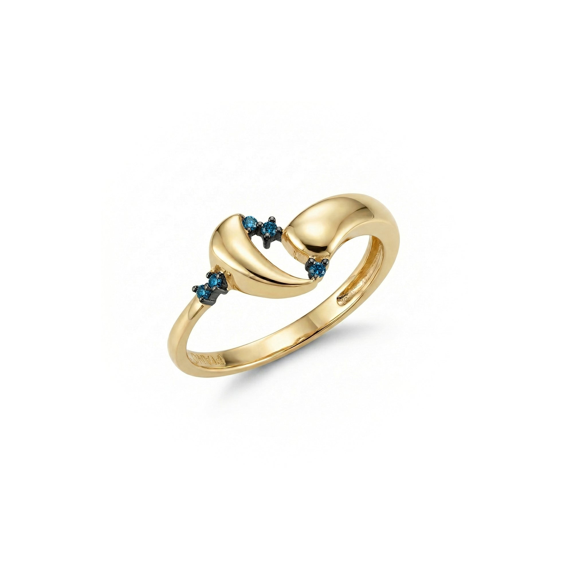 Azzuro Vega Mavi Pırlanta Yüzük / 14 Ayar Sarı Altın