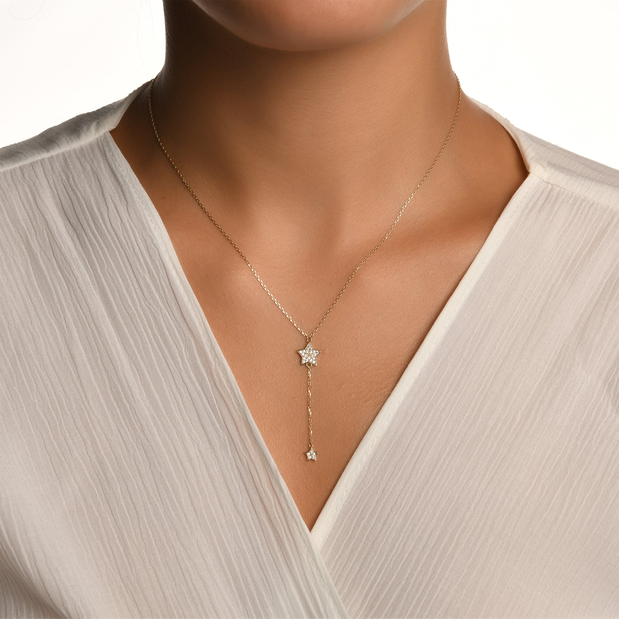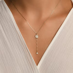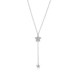 Yıldız Taşlı Sallantılı Y Model Altın Kolye / 14 Ayar Beyaz Altın
