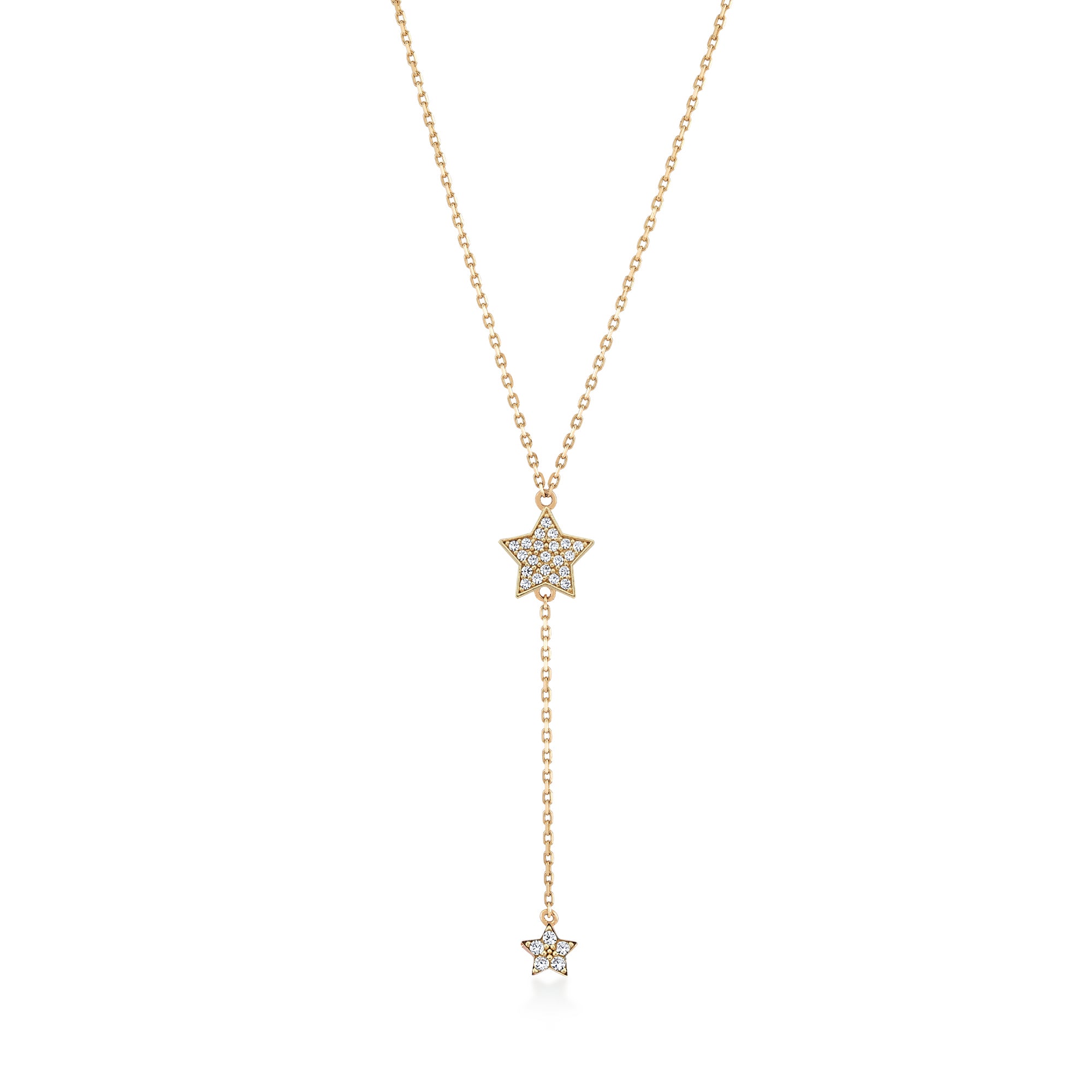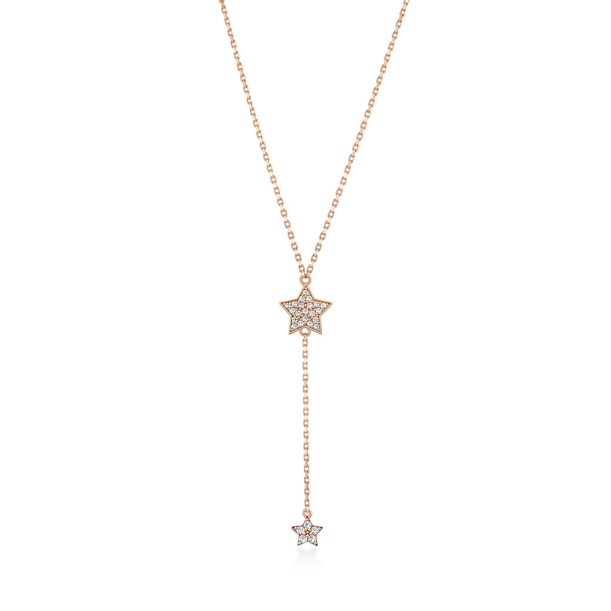 Yıldız Taşlı Sallantılı Y Model Altın Kolye / 14 Ayar Rose Altın