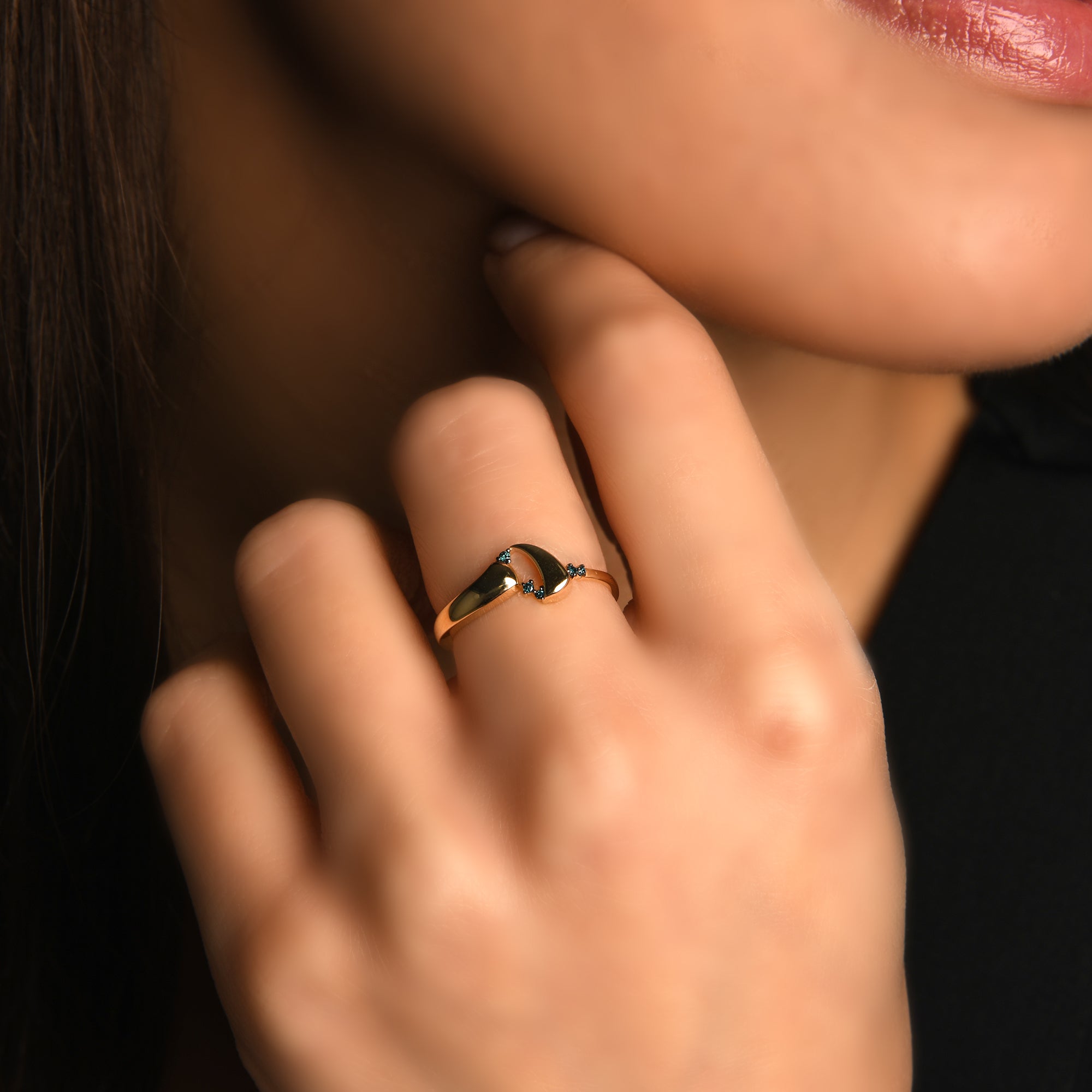 Azzuro Vega Mavi Pırlanta Yüzük / 14 Ayar Sarı Altın