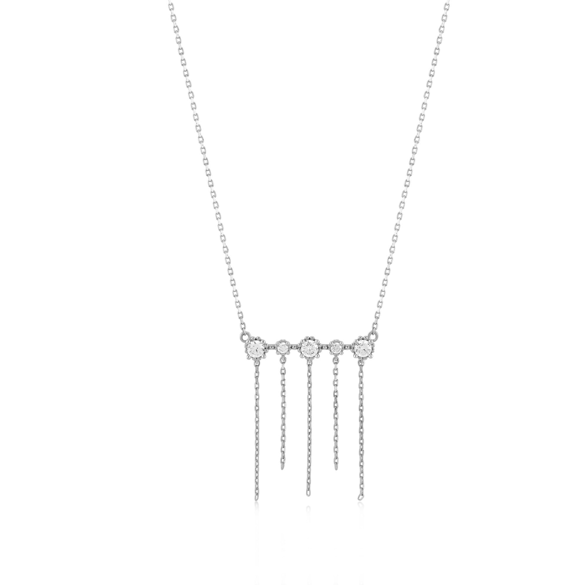 Zincir Sallantılı Taşlı Altın Kolye / 14 Ayar Beyaz Altın