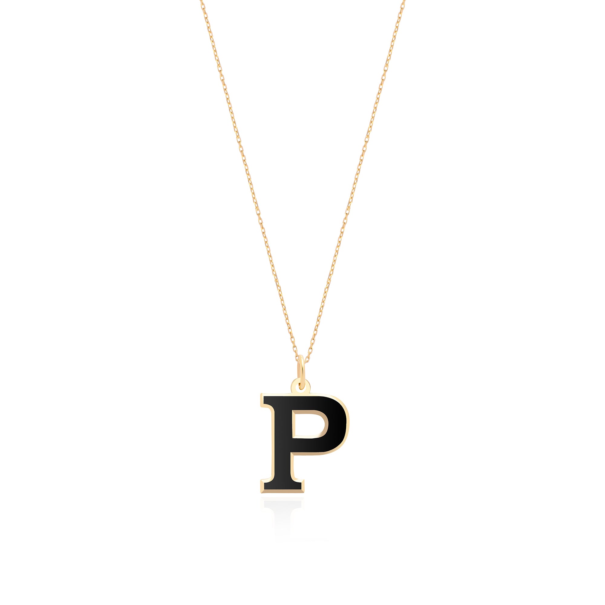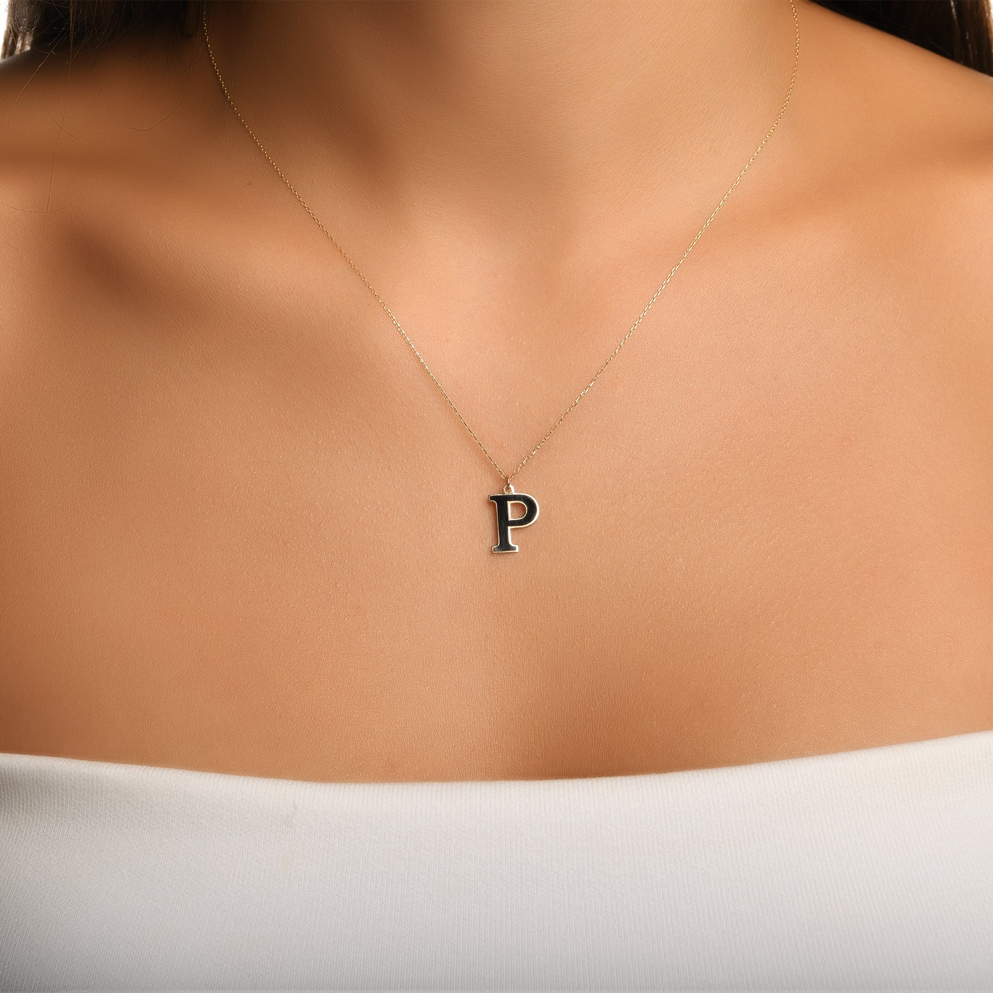Alfa Siyah Mineli Harf Altın Kolye / 14 Ayar Sarı Altın