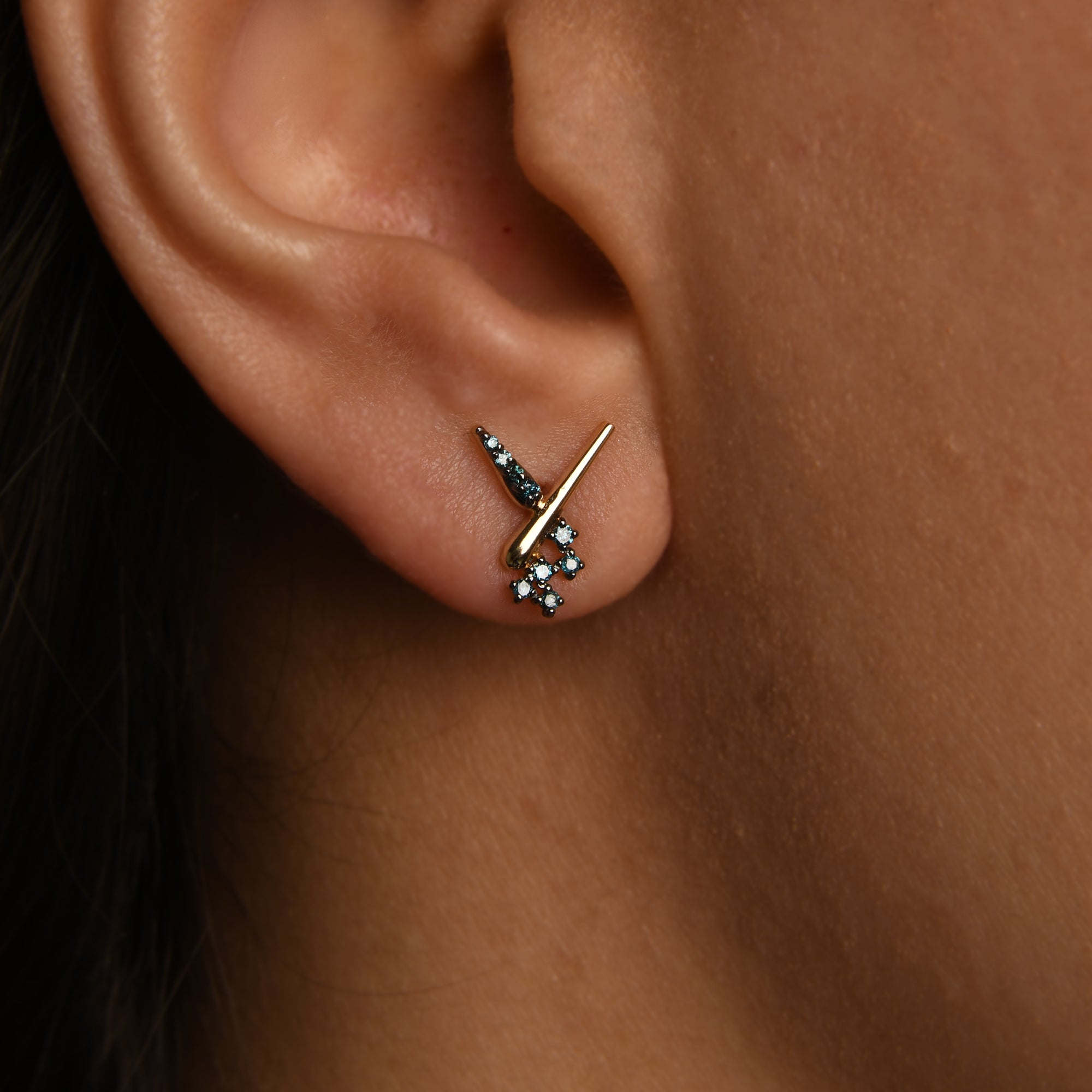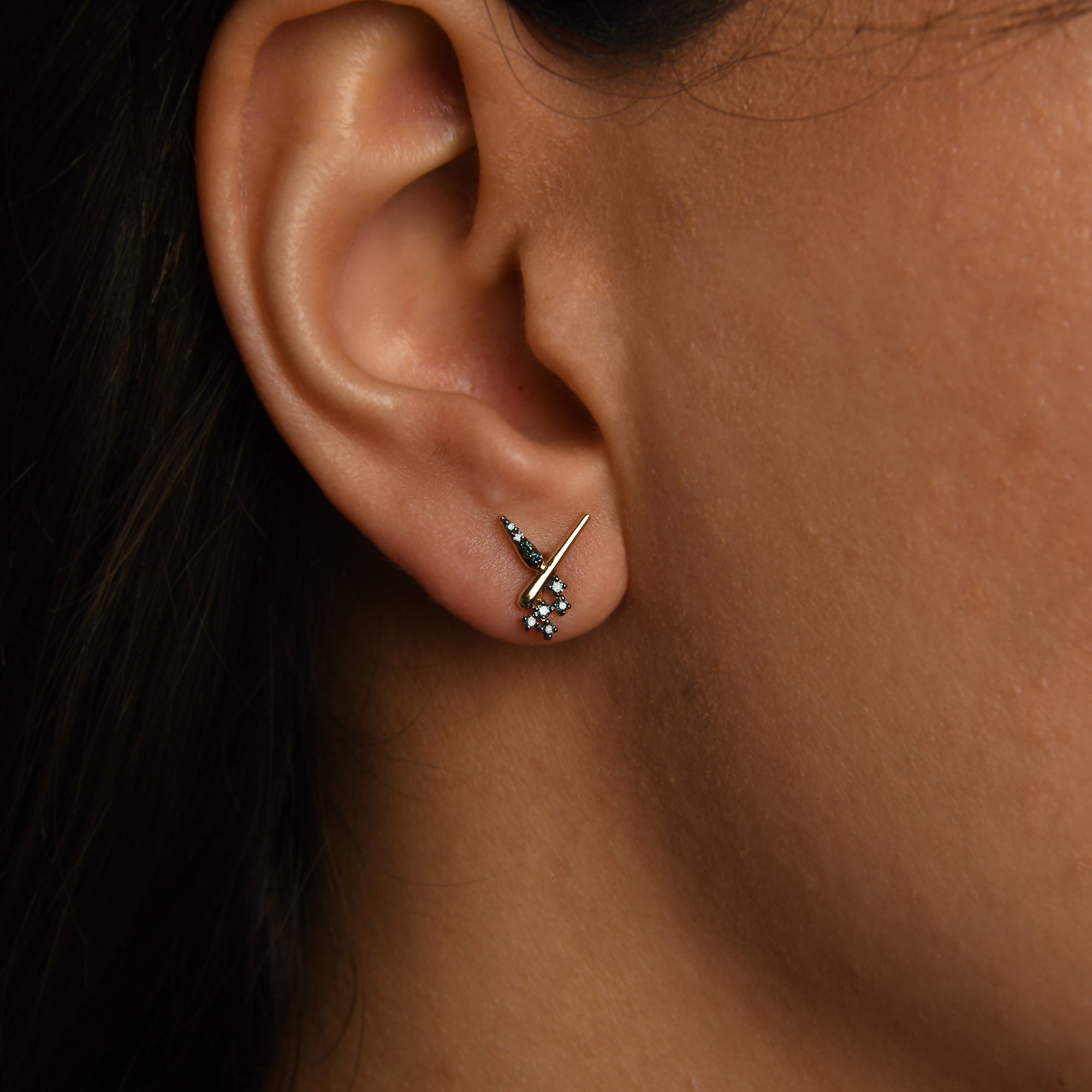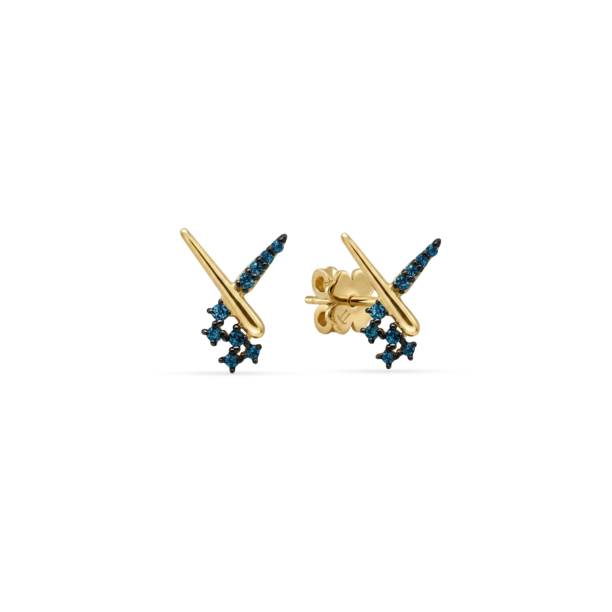 Azzuro Rabbit Mavi Pırlanta Küpe / 14 Ayar Sarı Altın