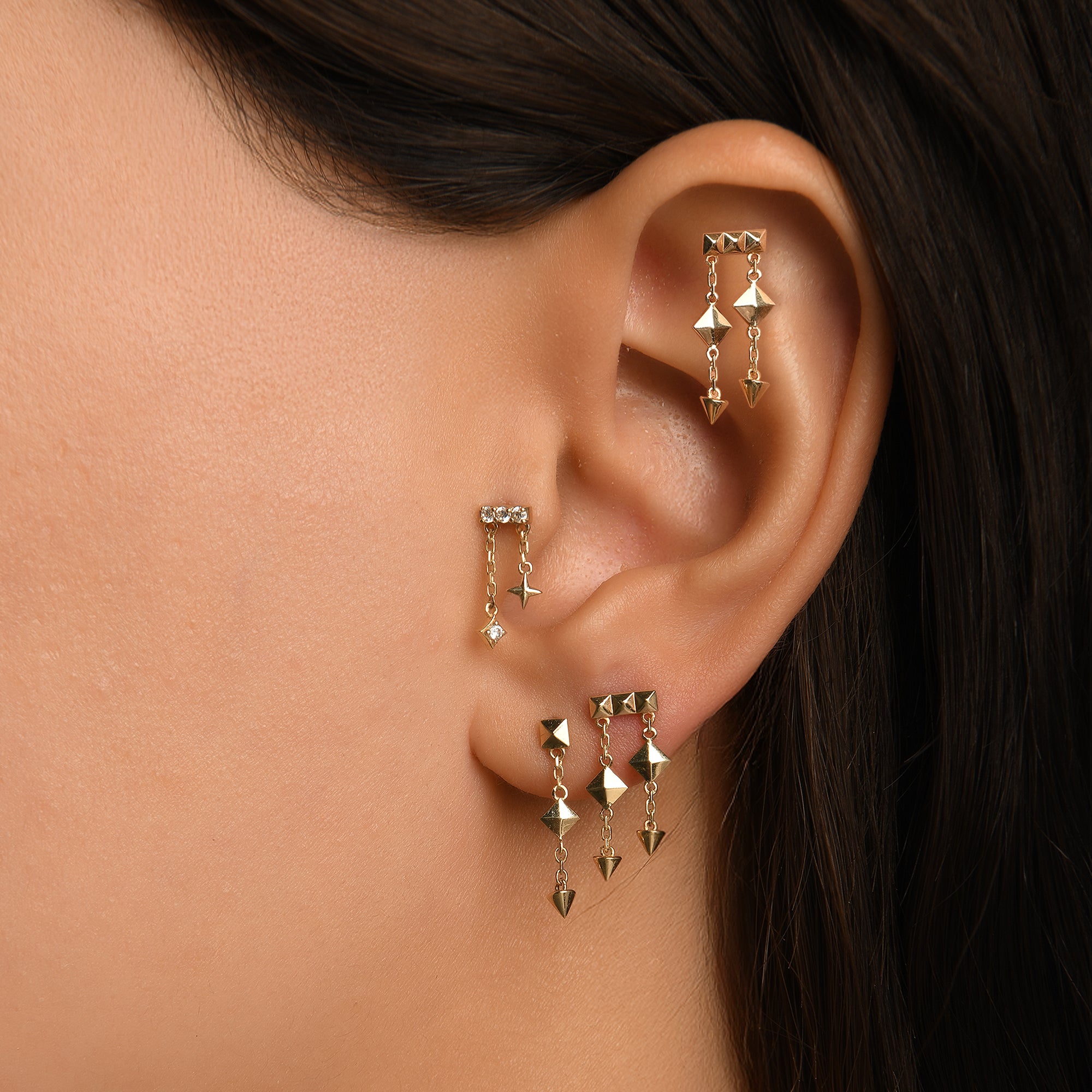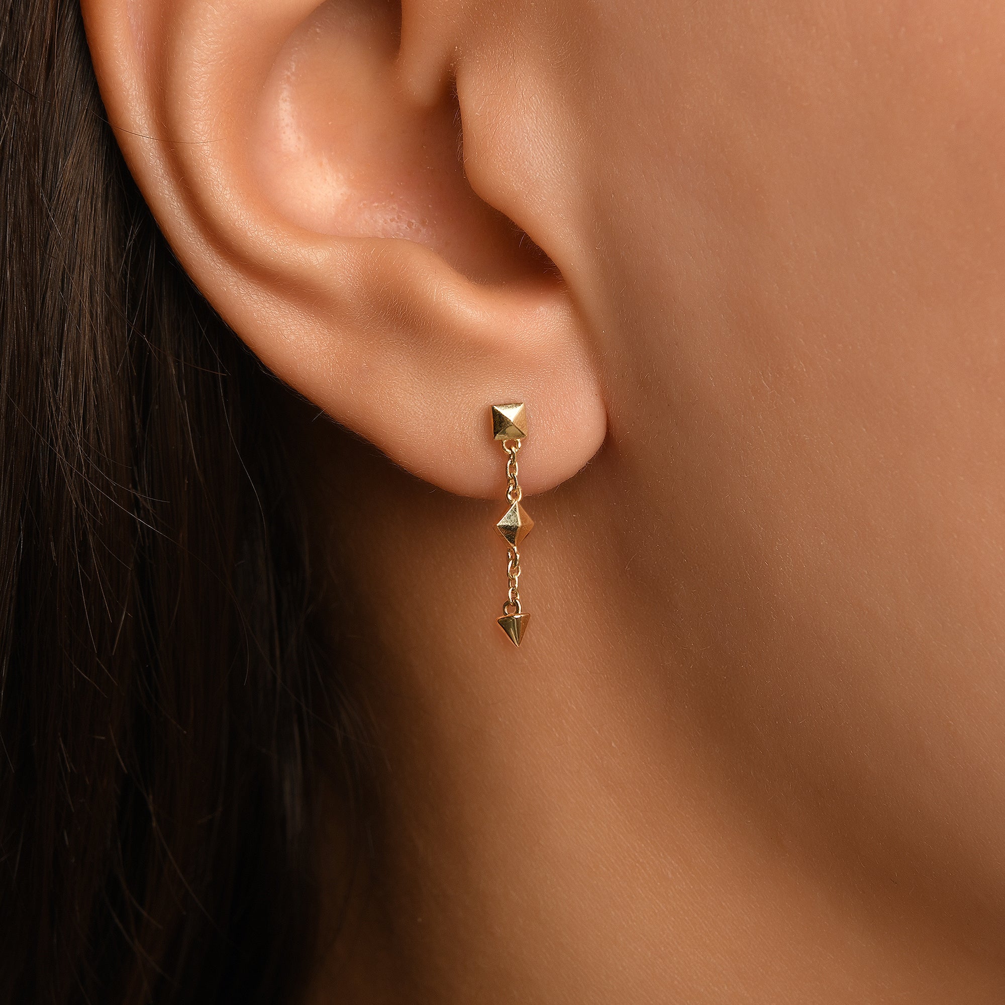 Gaudi Geometrik Detaylı Tek Zincir Sallantılı Altın Piercing
