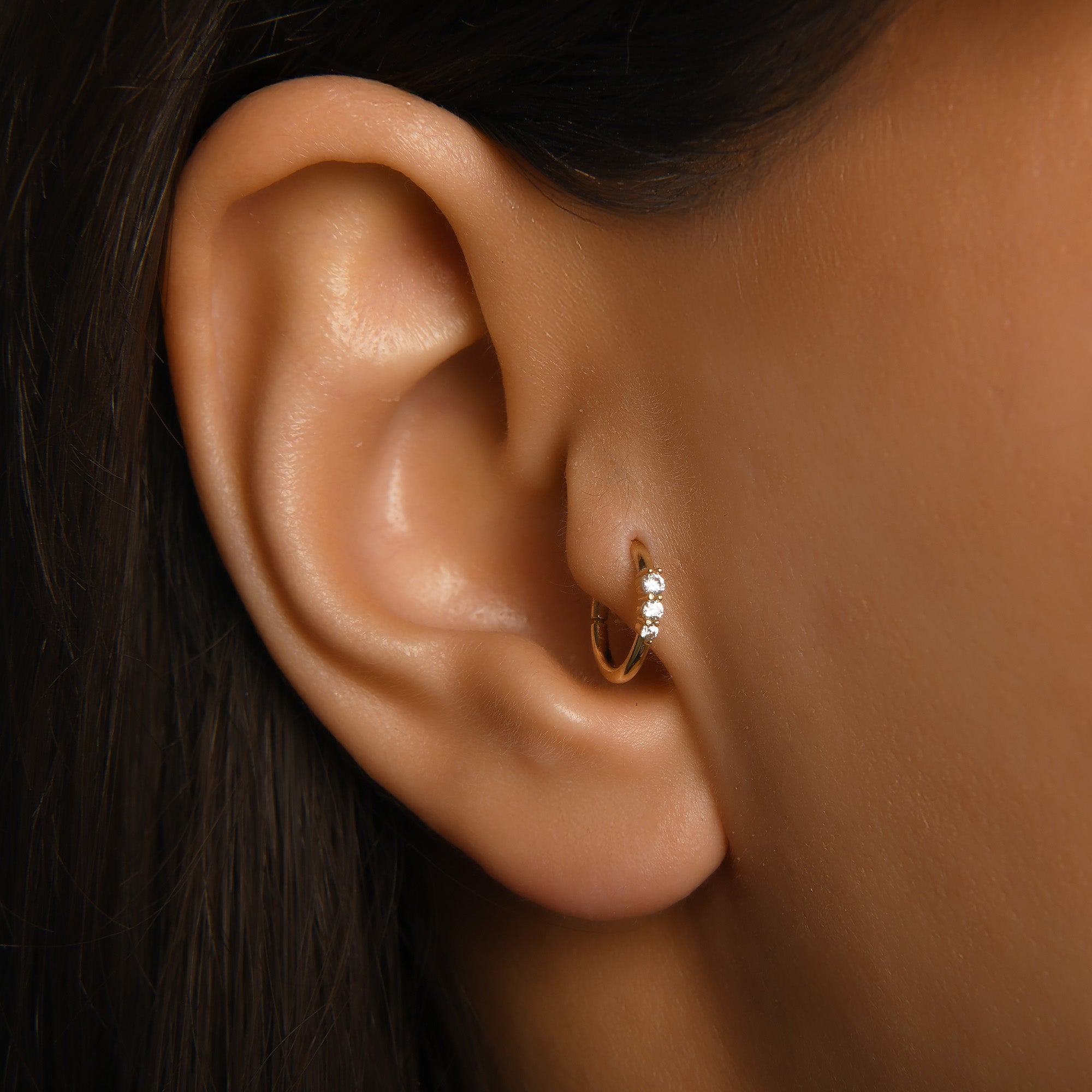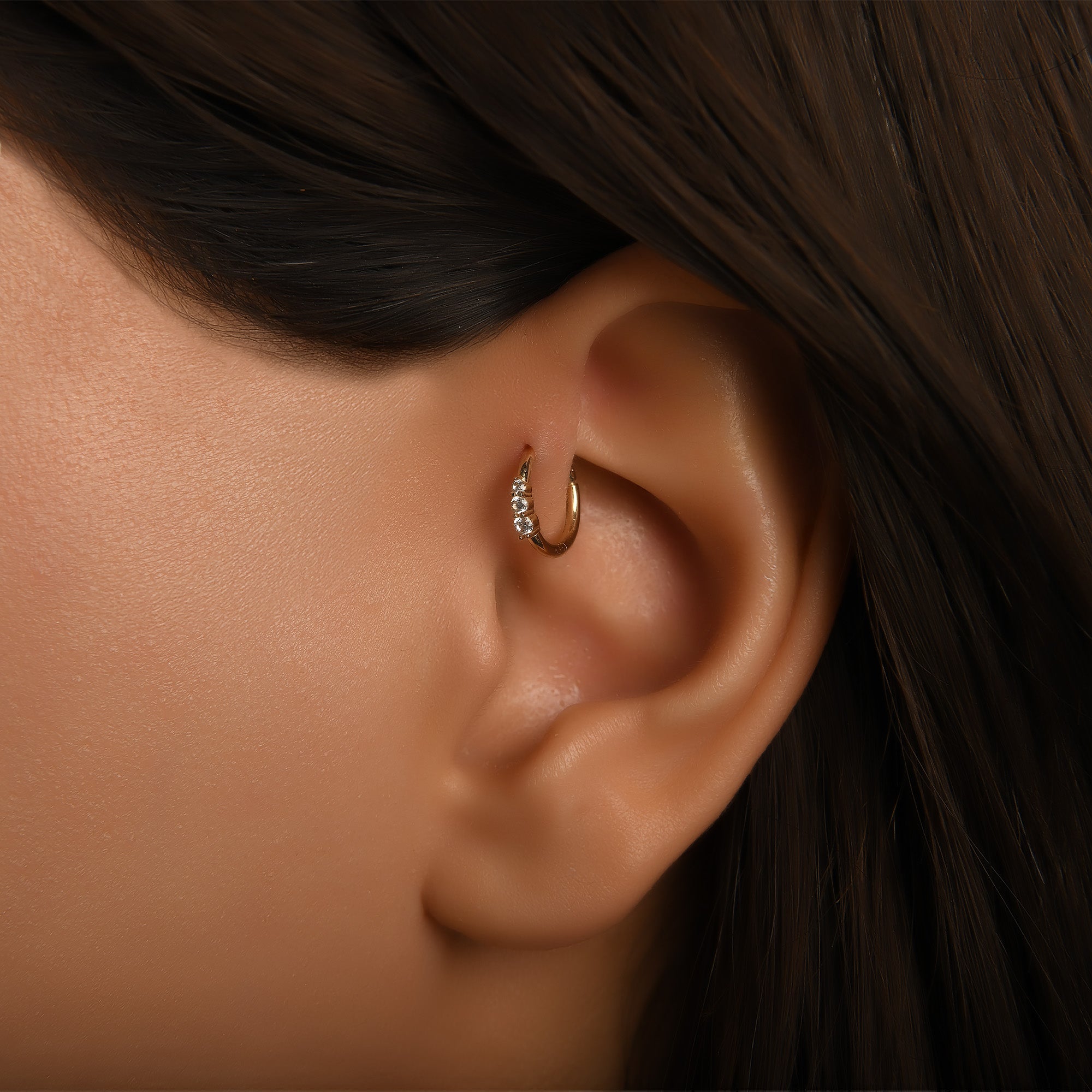 Orion Simetrik Üç Taşlı Halka Piercing