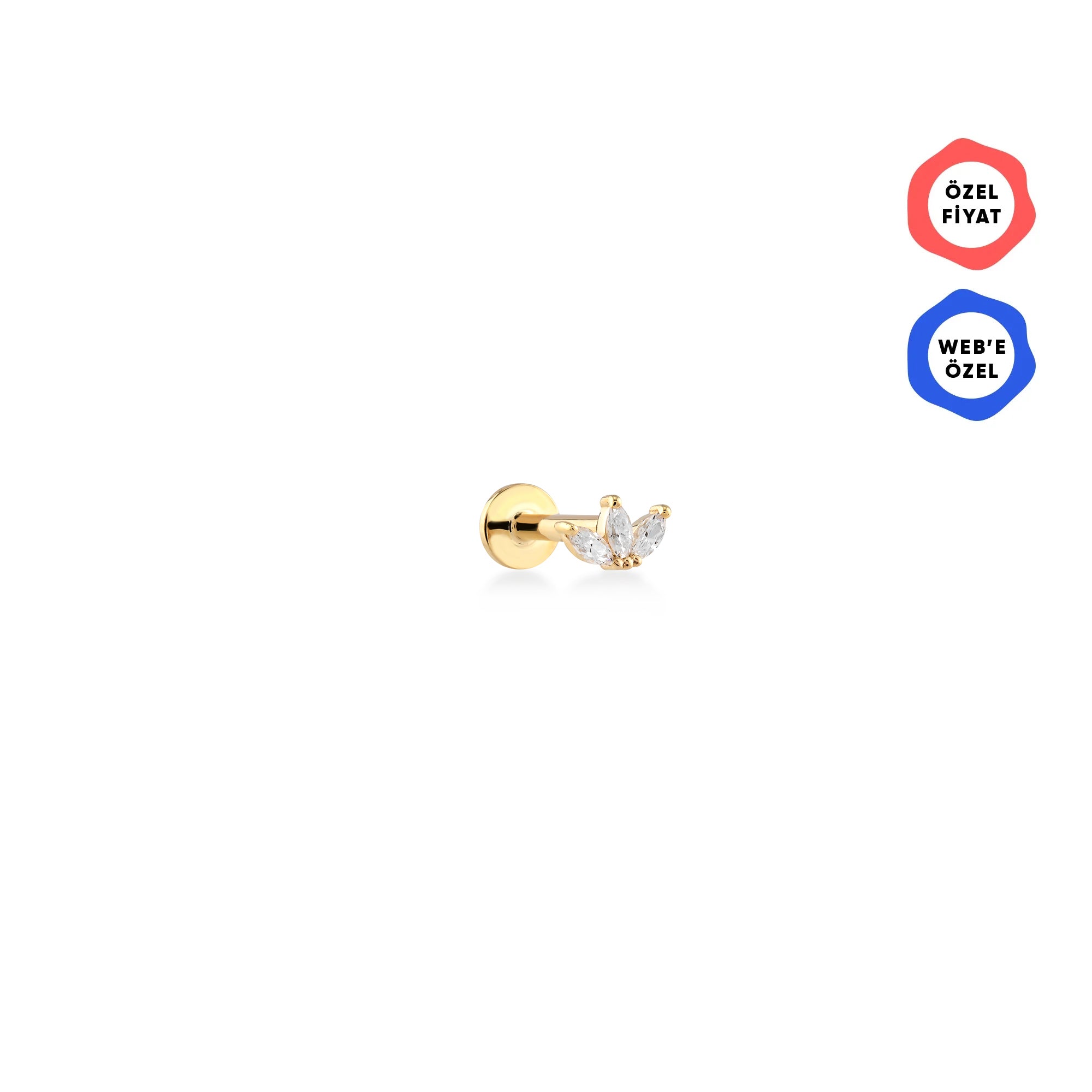 Пирсинг козелка в форме опалита Tria Marquise, золотой камень