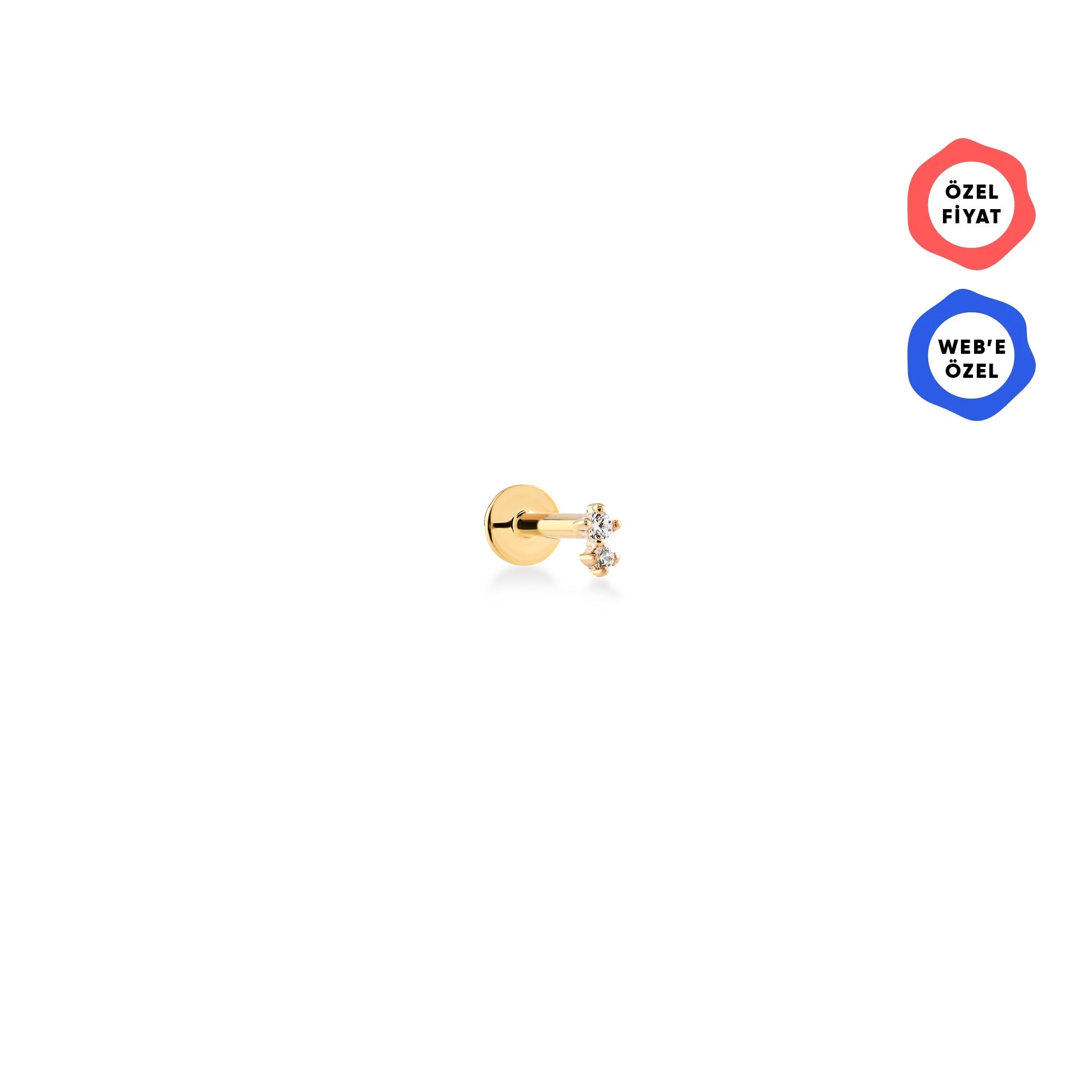Gusto Premium Çift Taşlı Tragus Pırlanta Piercing / 14 Ayar Sarı Altın