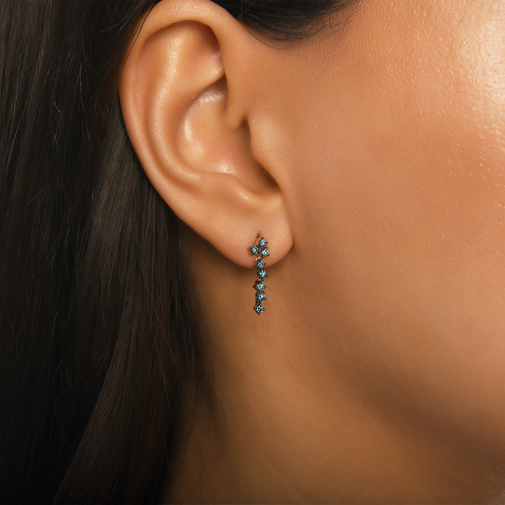 Серьги-кольца Drop Dangle Hoop с синими бриллиантами придают изысканный вид благодаря элегантному дизайну и ослепительным голубым бриллиантам. Эта серьга, которую вы можете носить как в особые моменты, так и в повседневной жизни, станет символом элегантности благодаря своей каплевидной форме. Дополните свою элегантность сиянием голубых бриллиантов.